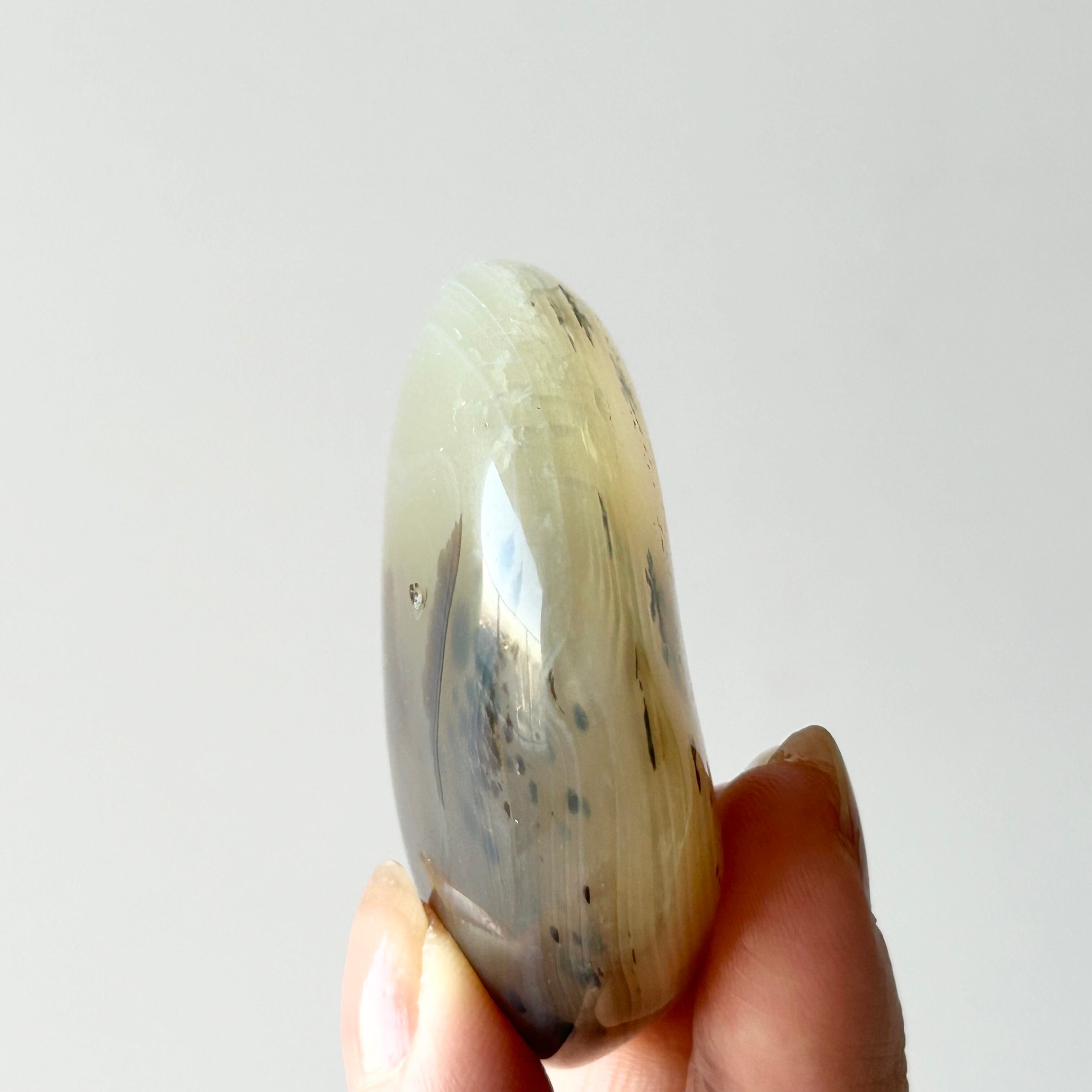 おにぎりのような形のアゲートに星のようなデンドライトが見られるデンドリティックアゲートです。