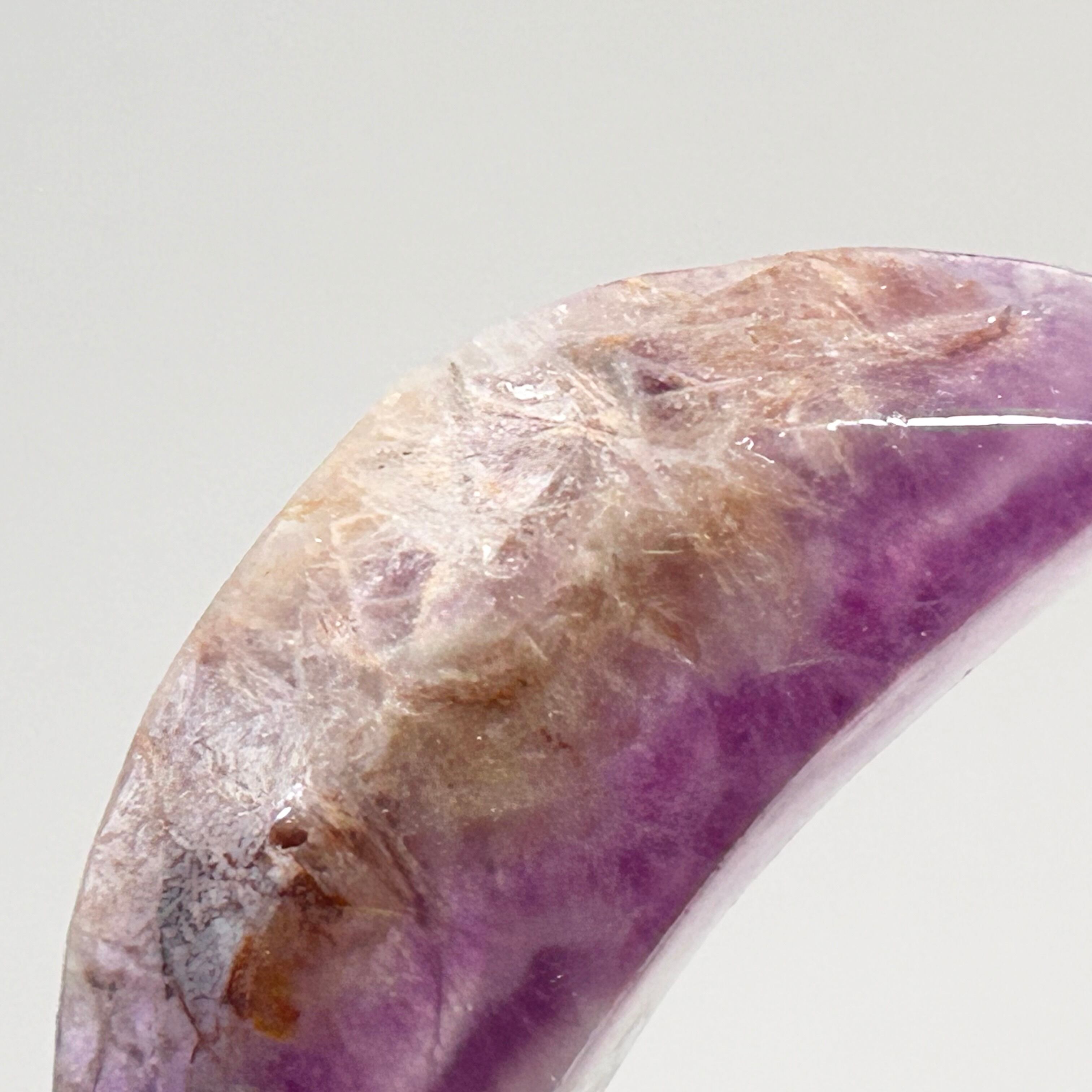 レアなベビーピンクのエンジェルフェザーが入った、三日月形のフローライトトレイ。