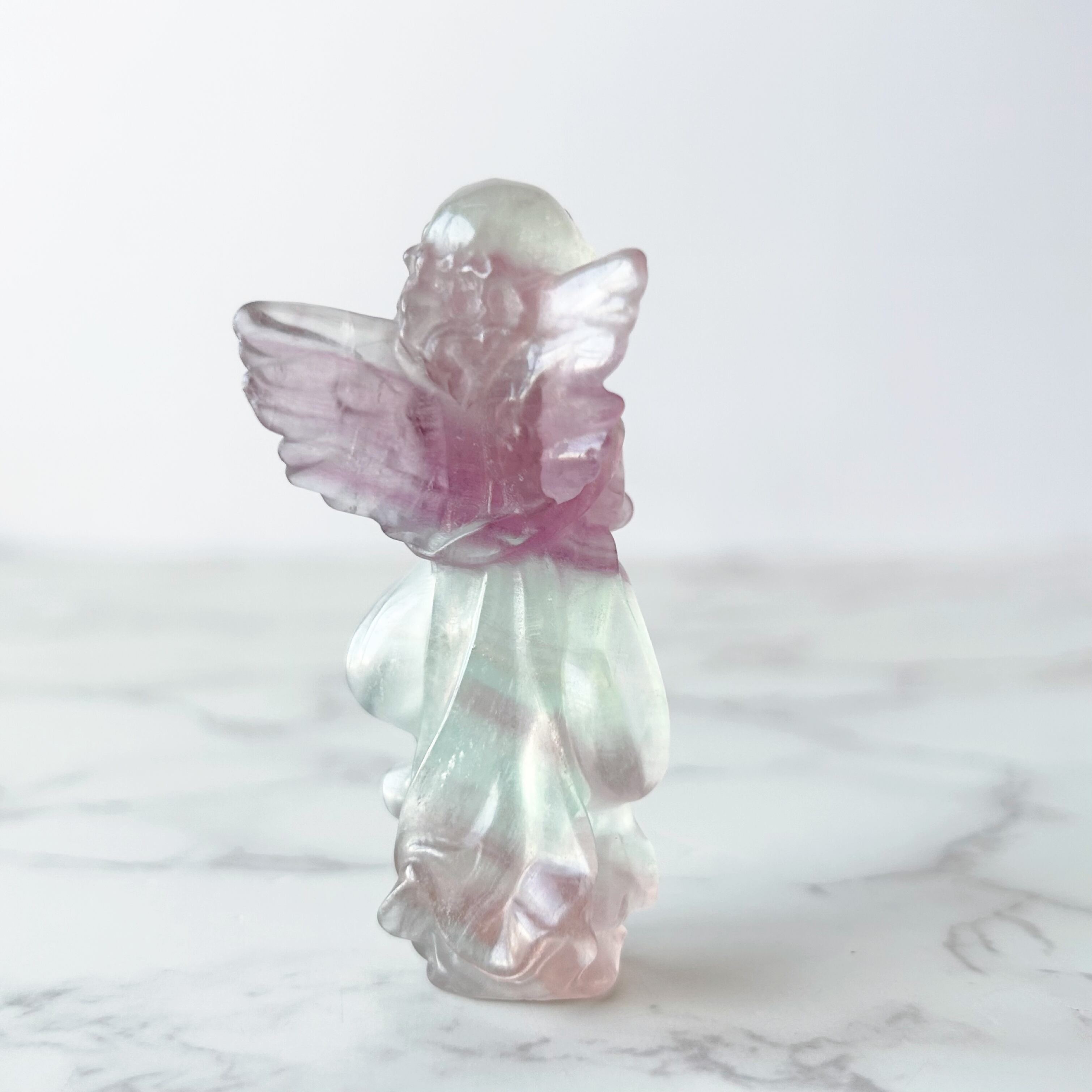 繊細な彫刻がうっとりするほど美しい、天使のフローライトです。