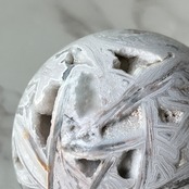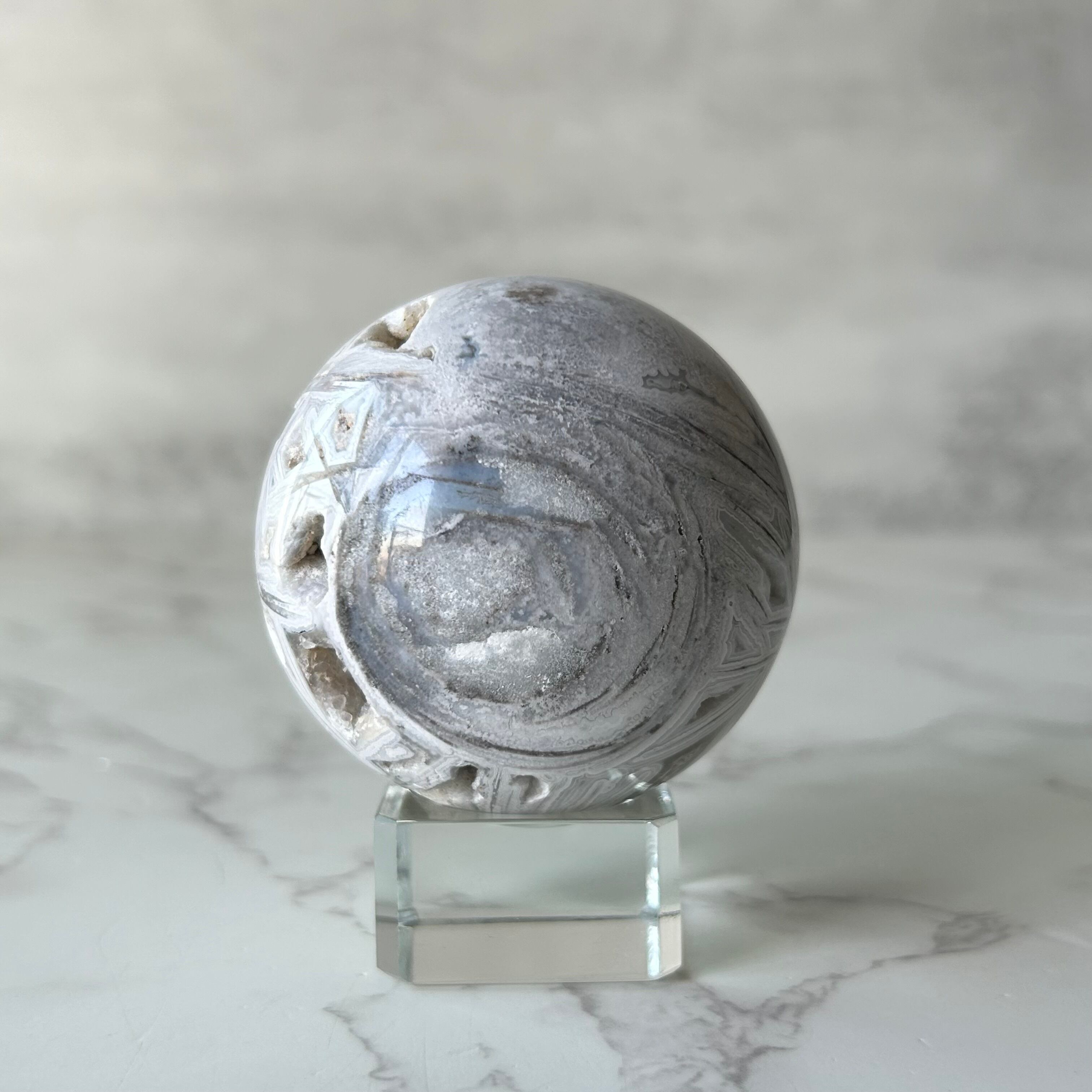 メキシカンクレイジーレースアゲートのスフィアです。ホワイトとライトグレーが織りなす縞模様がキレイです。