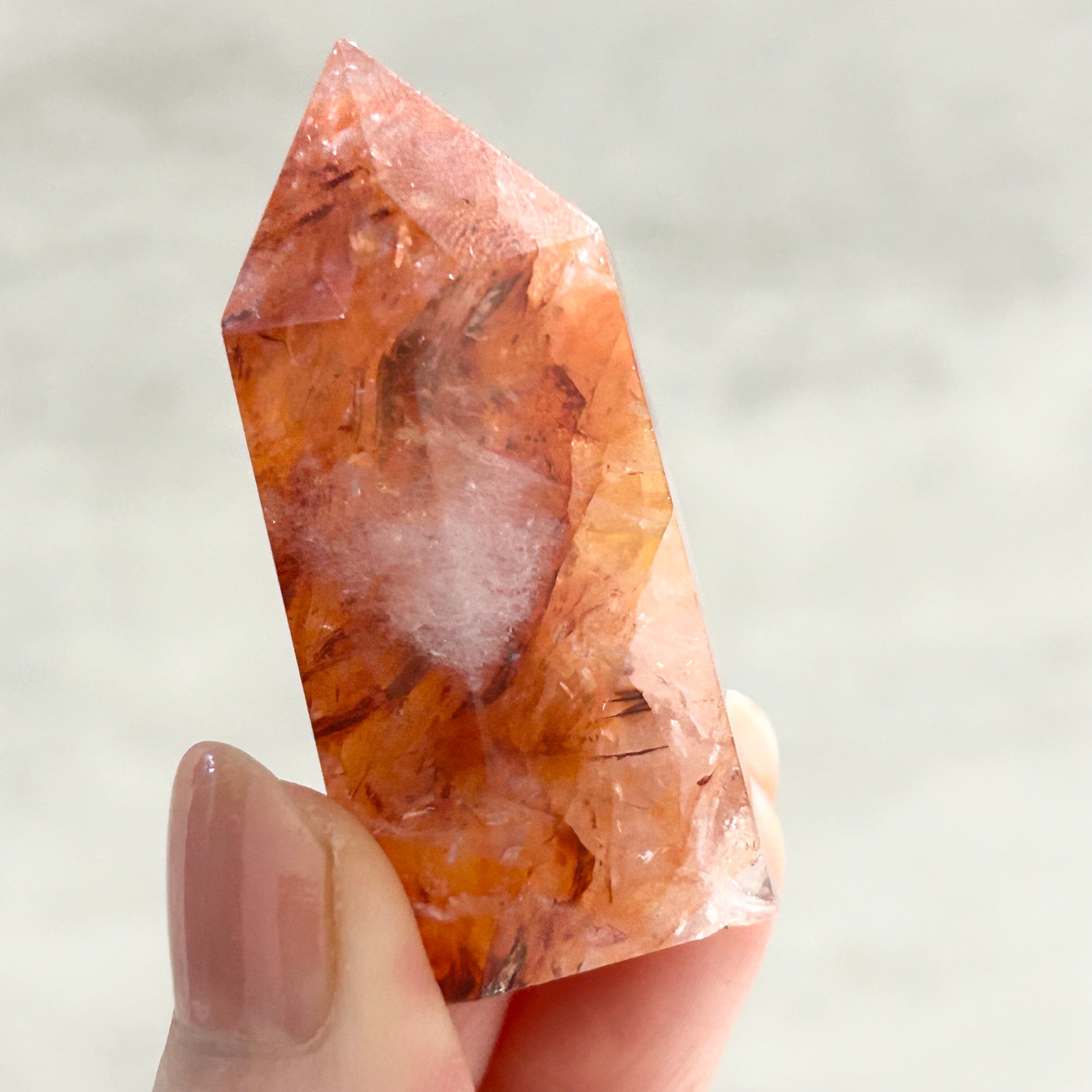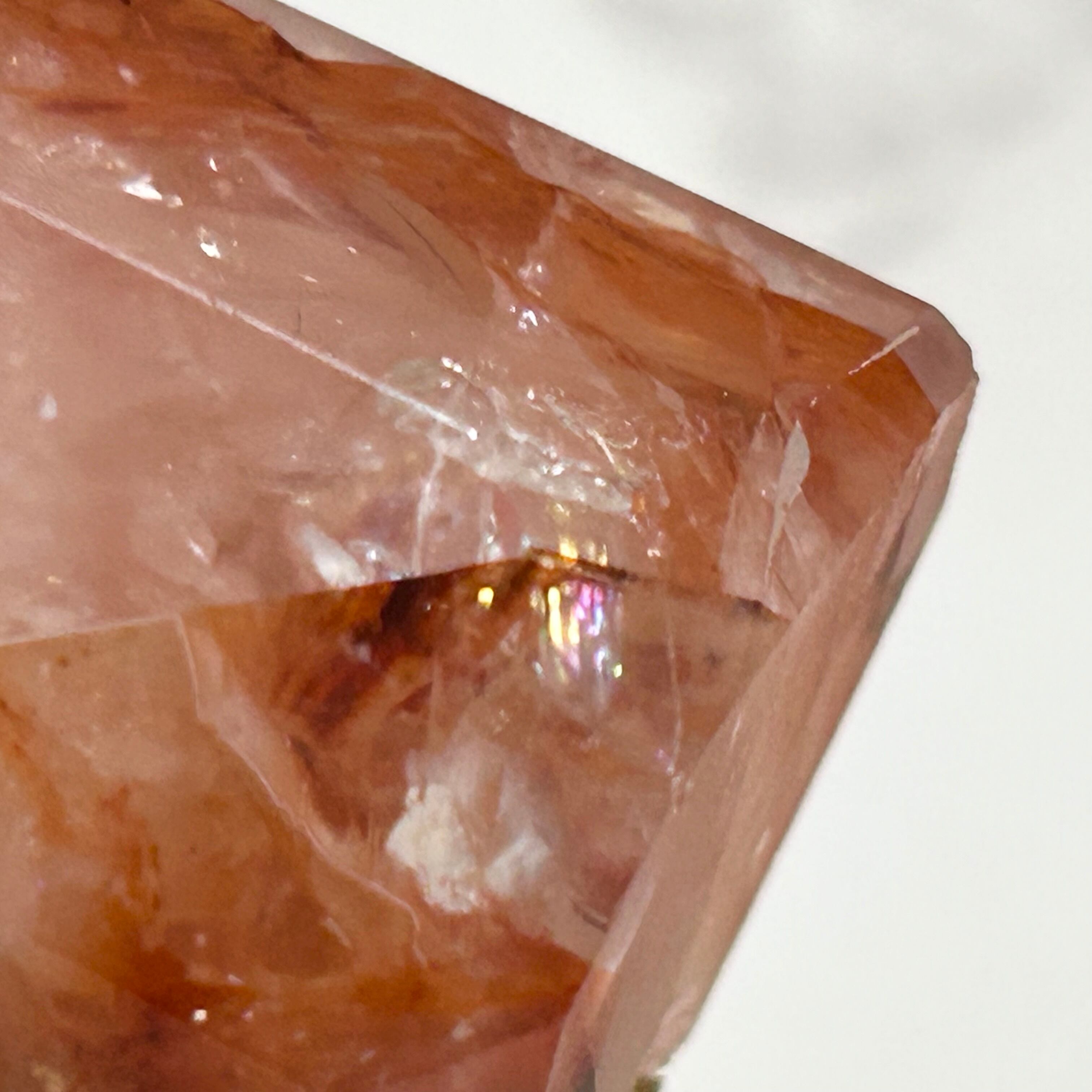 マダガスカル産のファイヤークォーツです。レインボーも見られます。