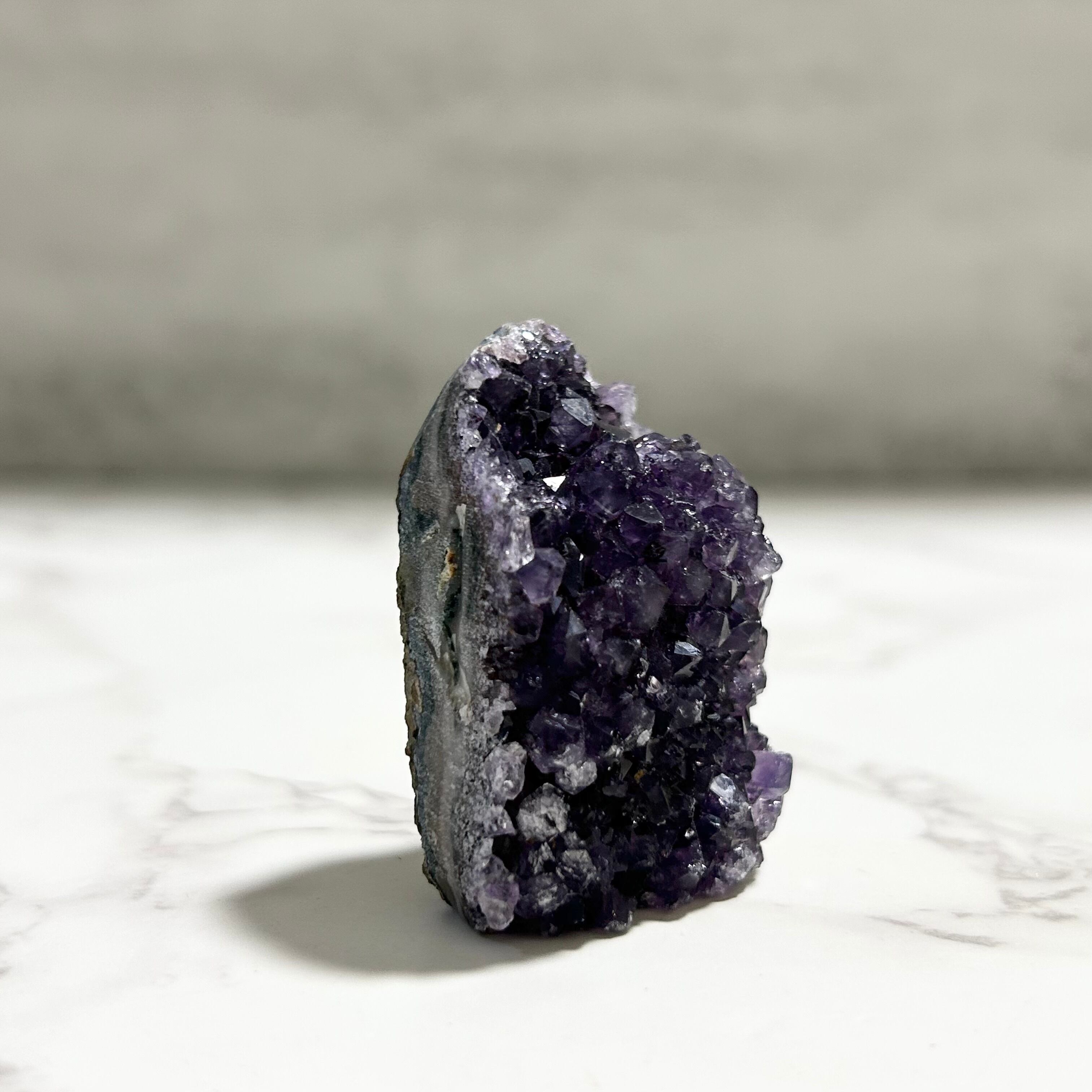 濃いめのパープルが美しい、ウルグアイ産のアメジストミニクラスターです。サイドの縞模様も可愛いです。