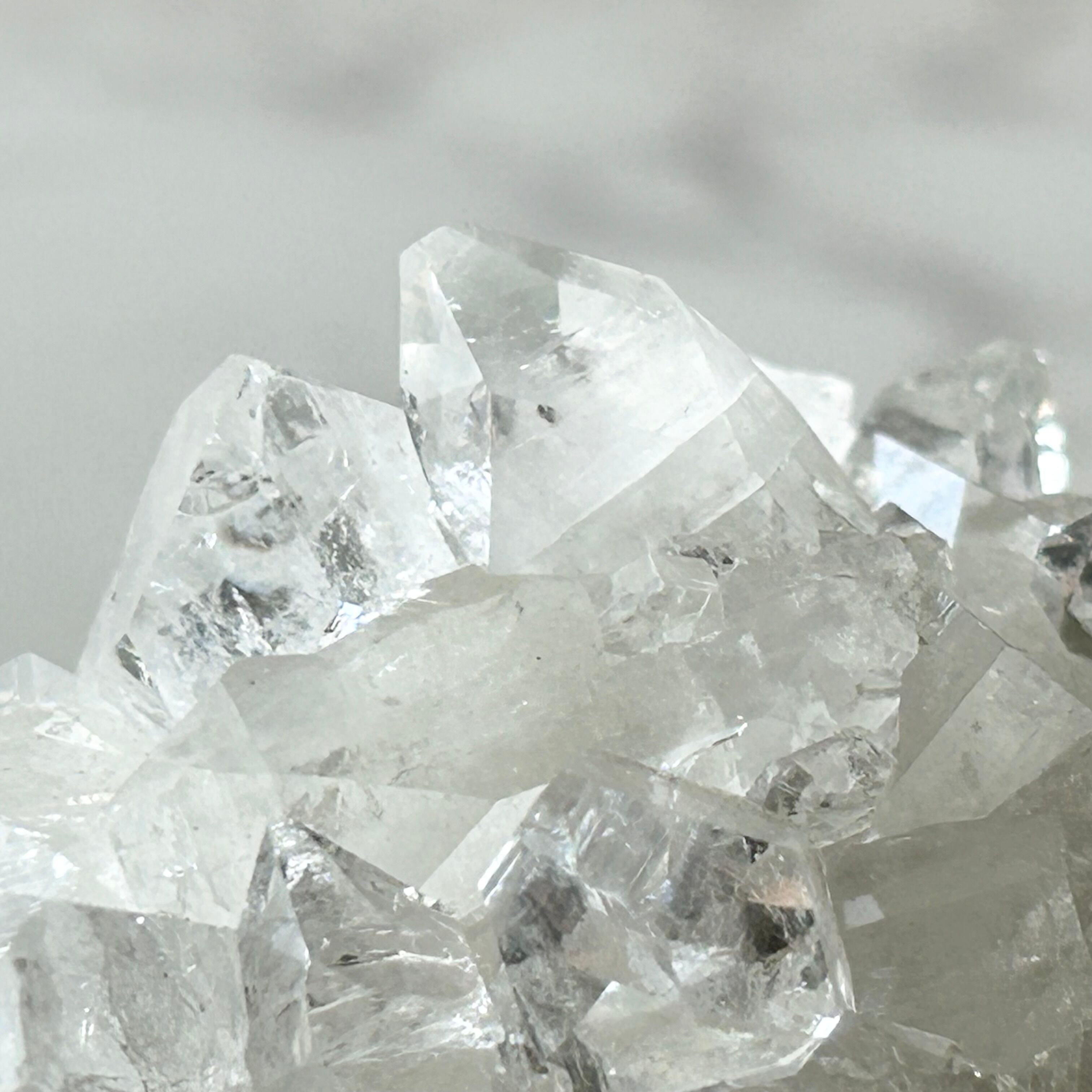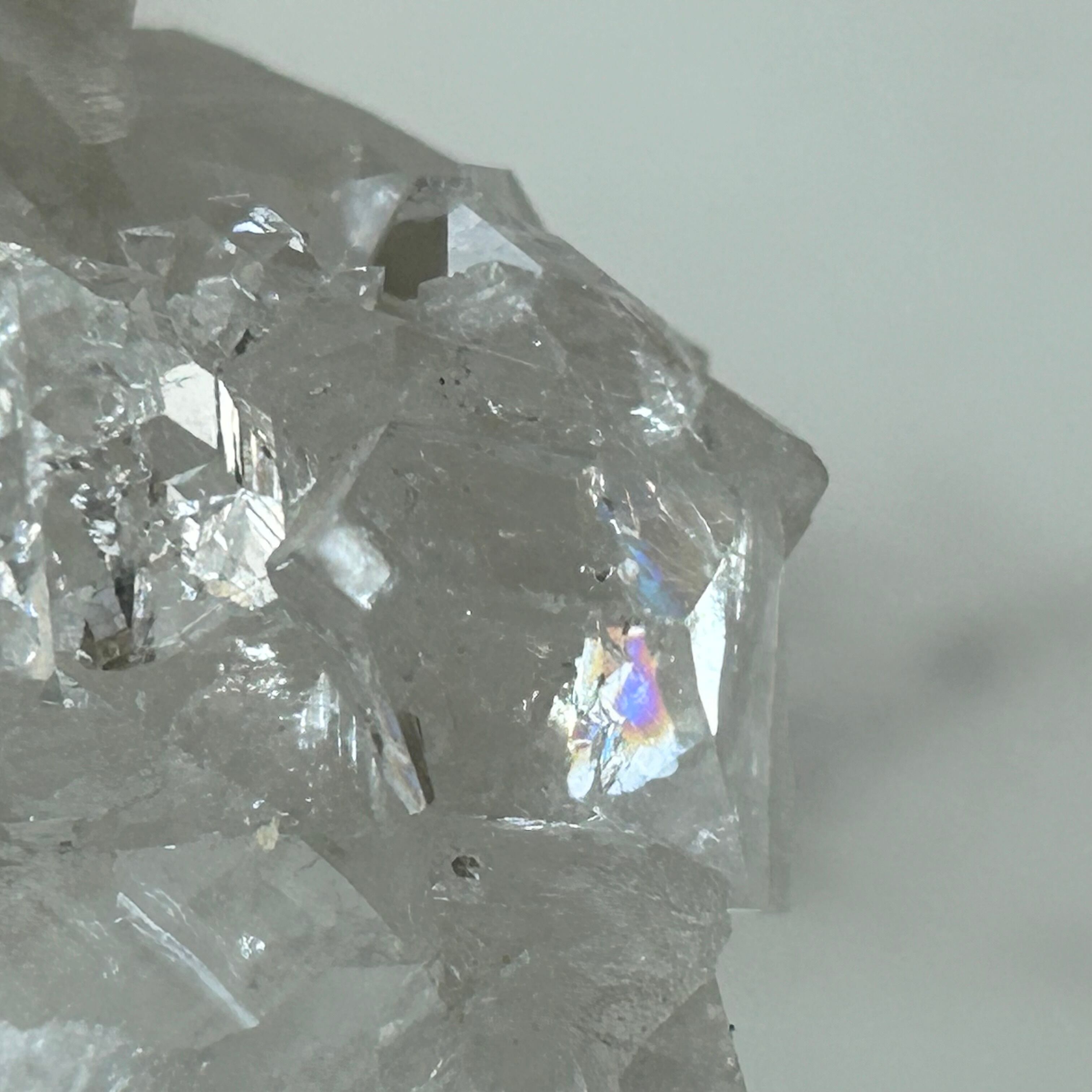雪山のような形が可愛い、ハイクオリティのアポフィライトです。あちこちにレインボーが見られます。