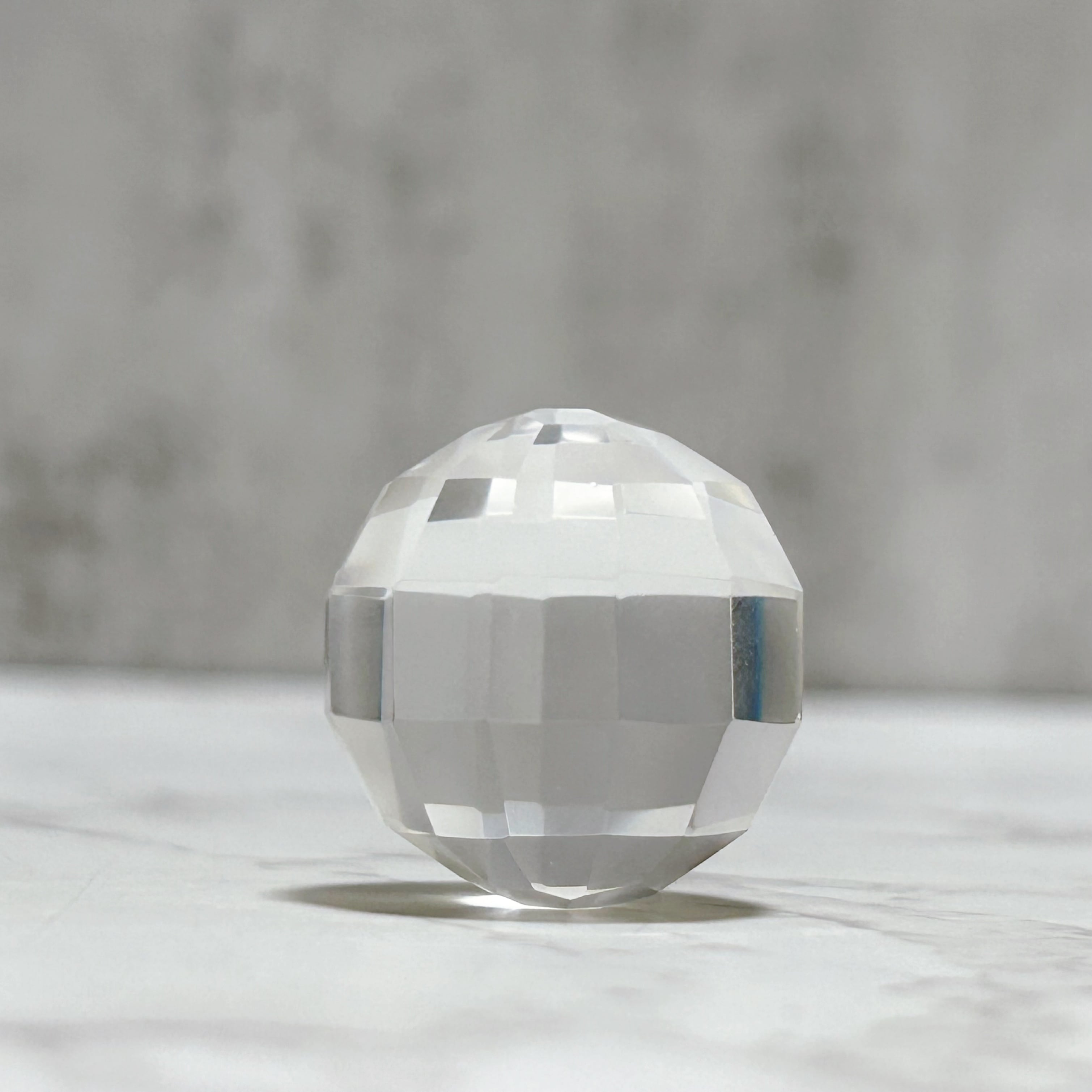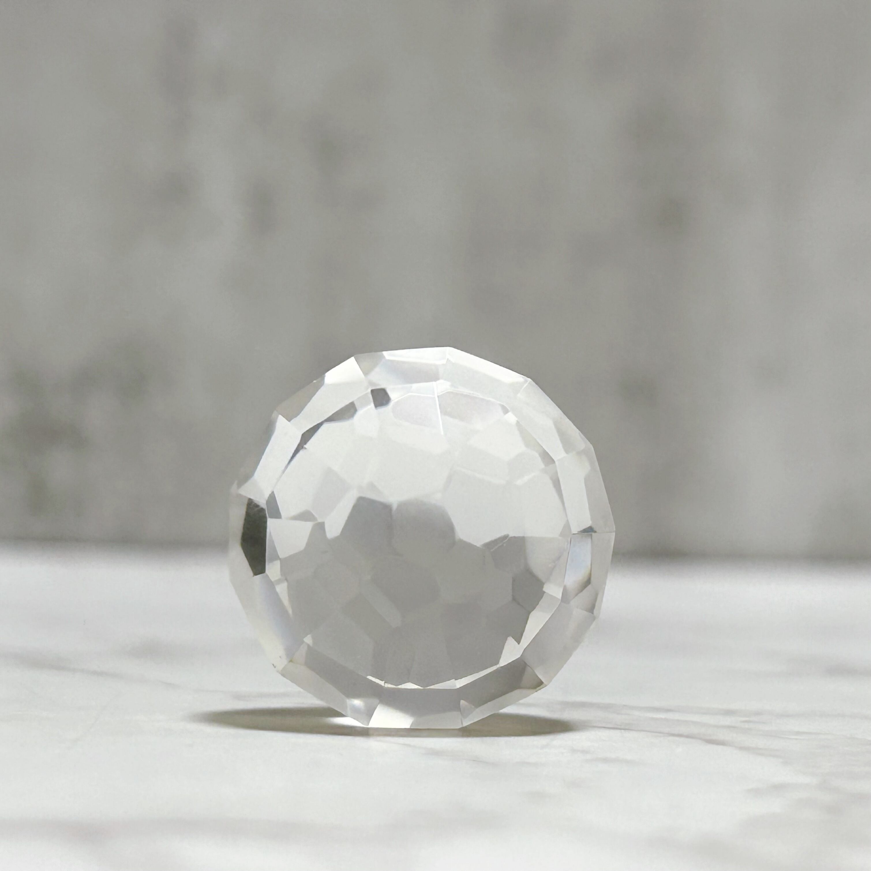 クリアクォーツのスフィア・ファセットカットです。クラックのないハイクオリティの水晶を多面体にカットしてあるので、光があちこちに反射し、どこから見ても美しく輝きます。