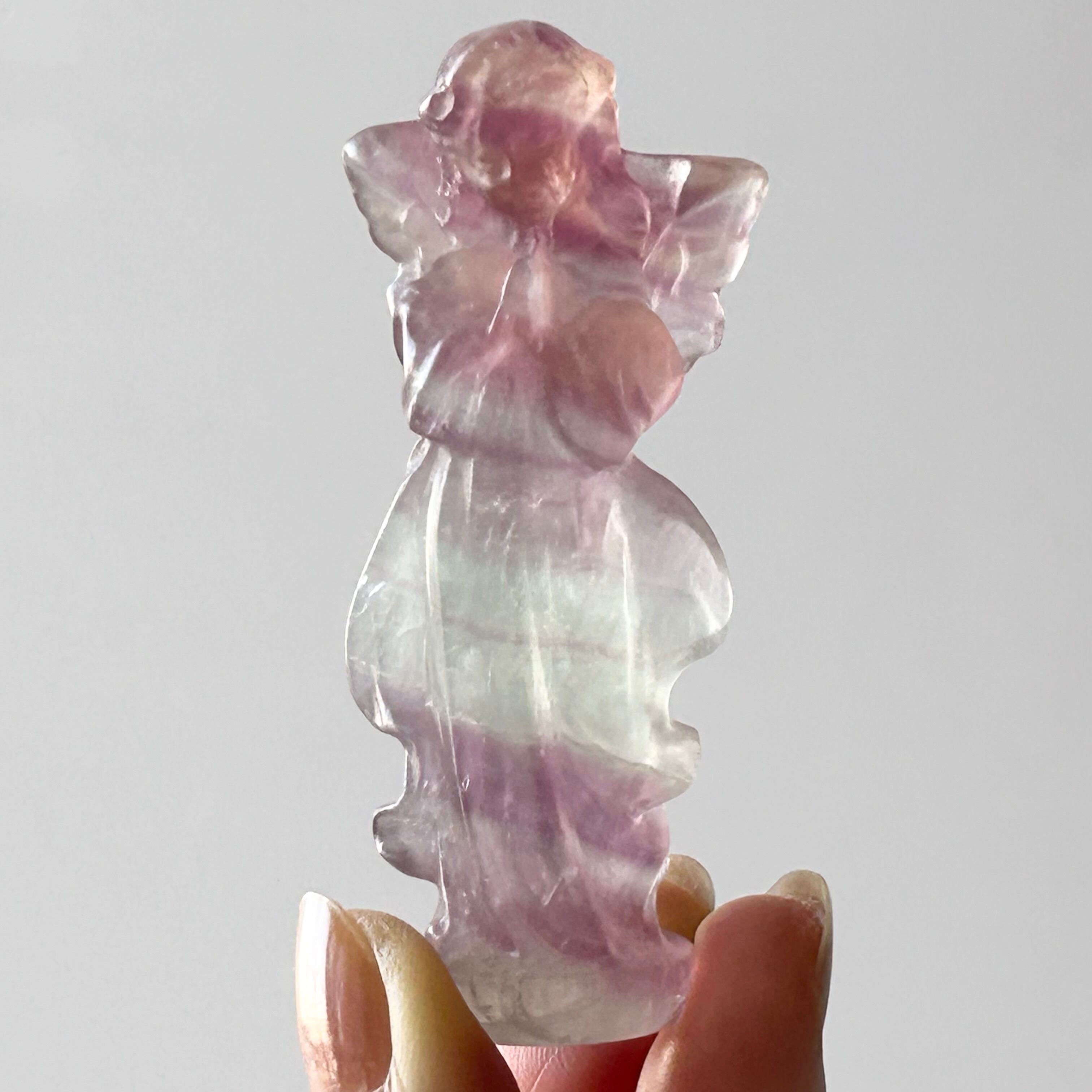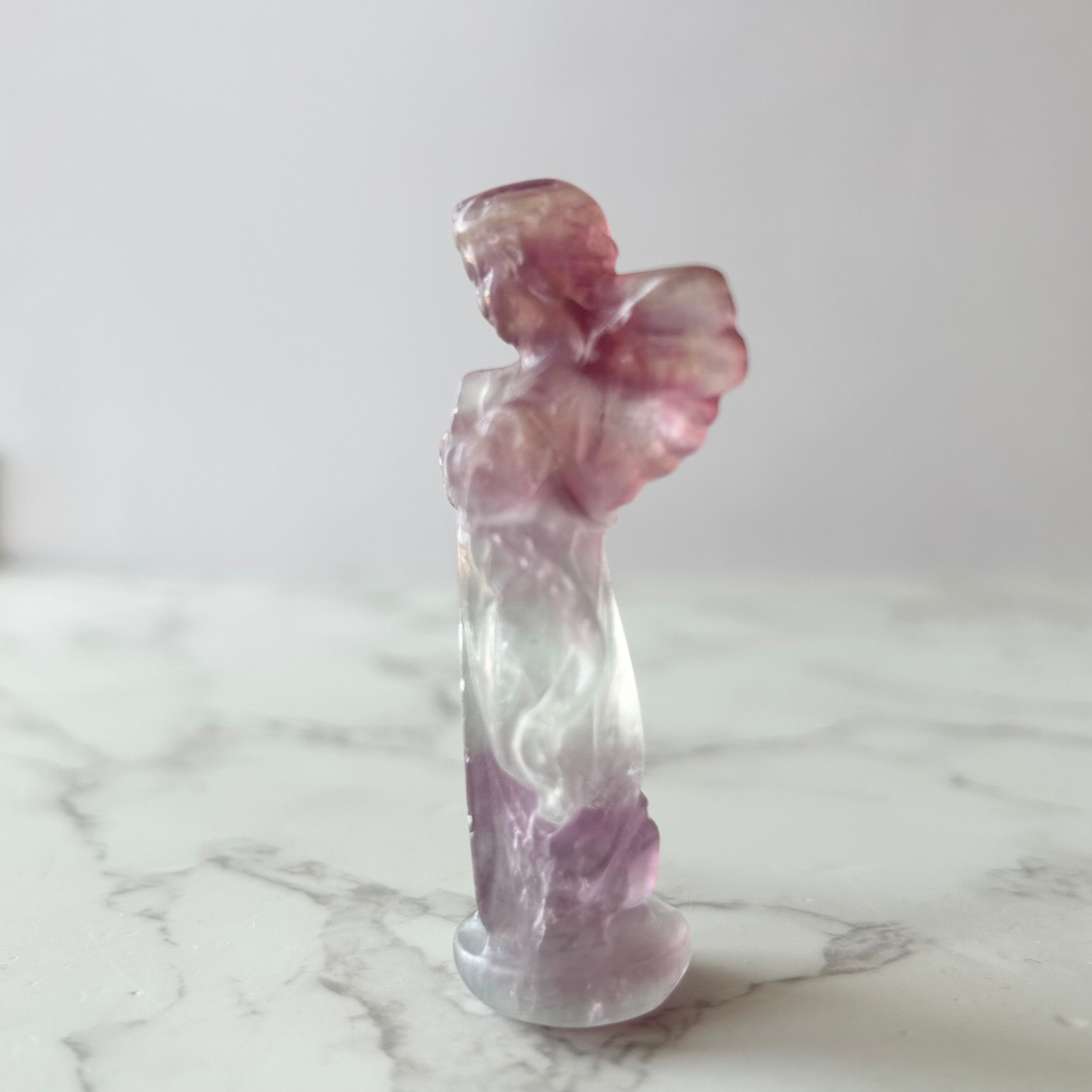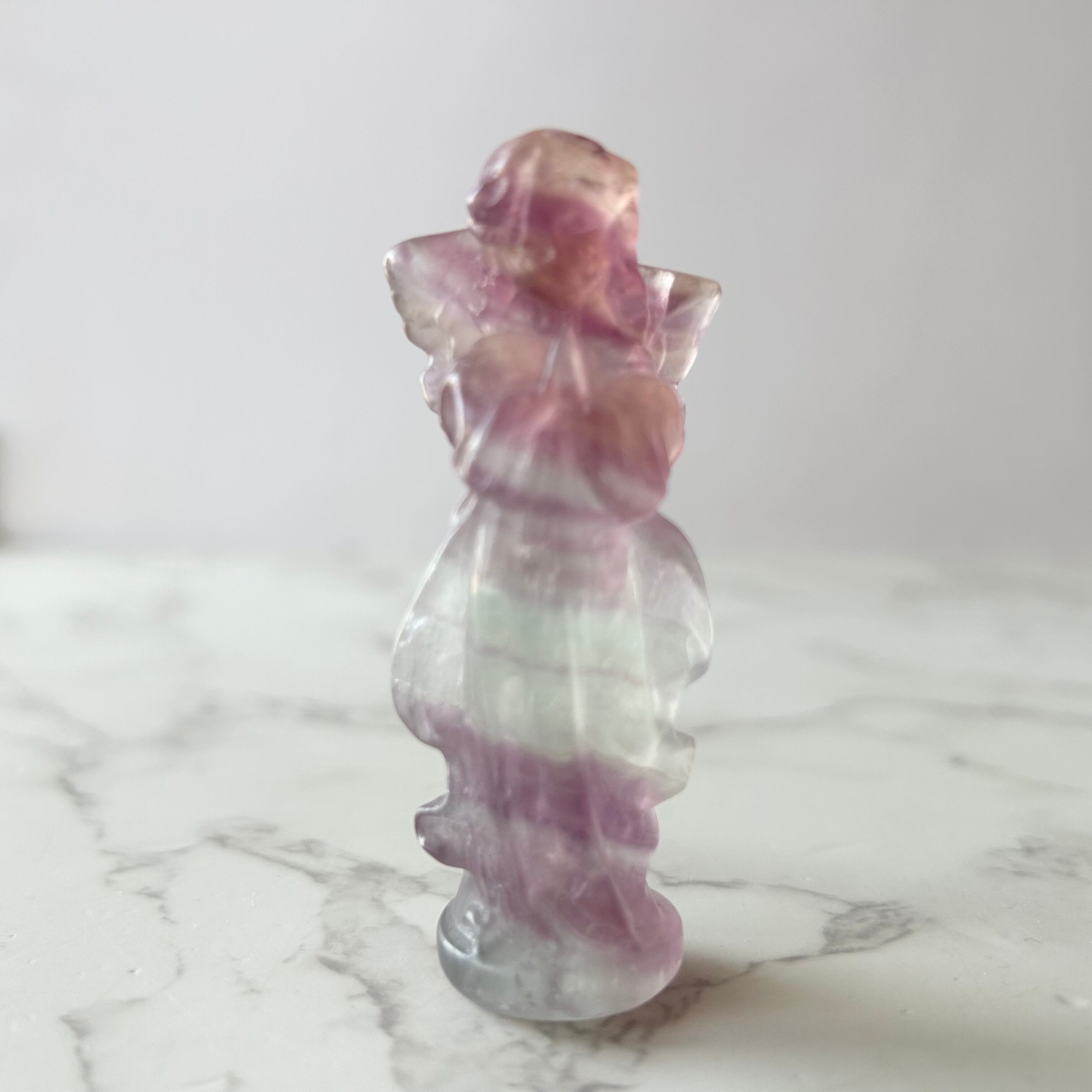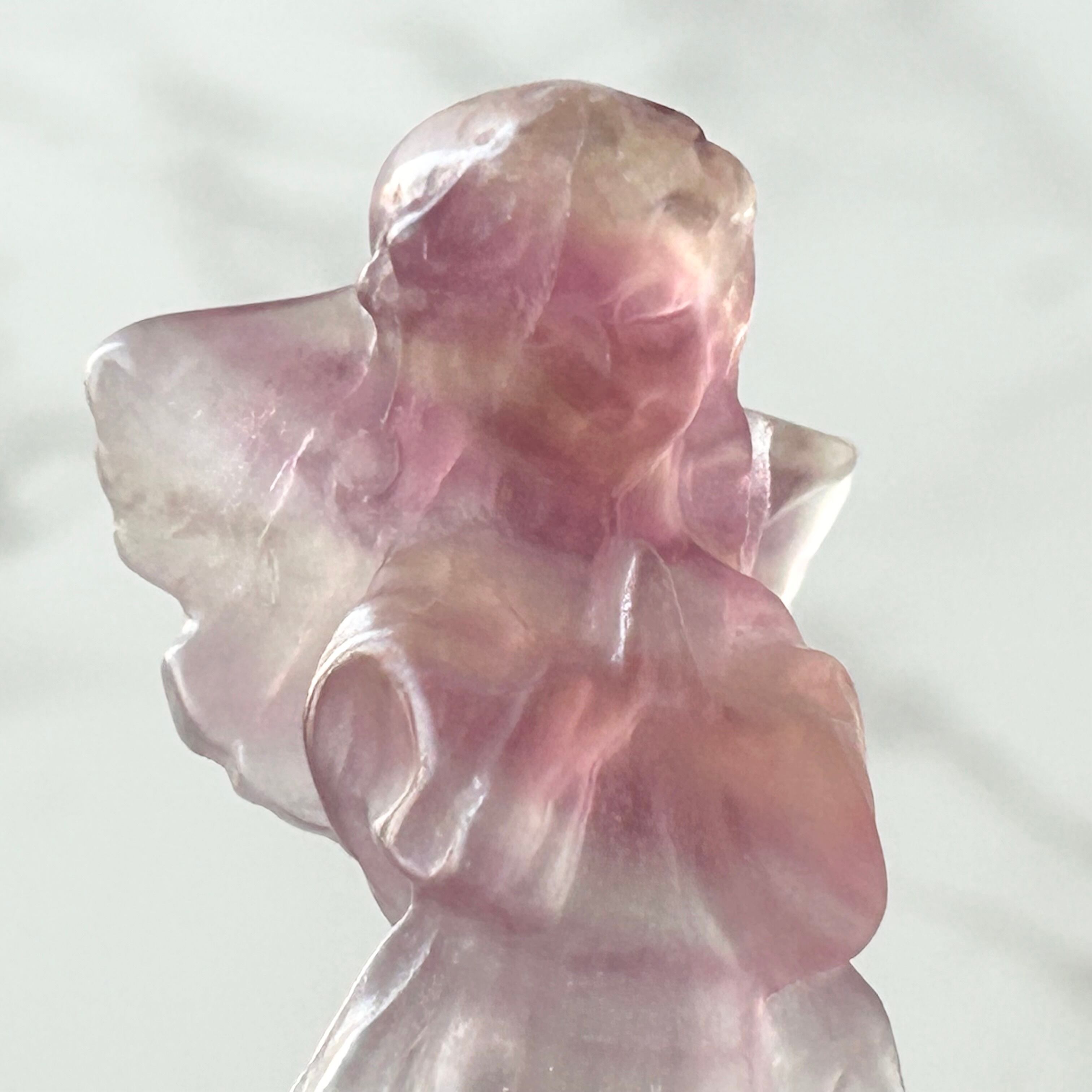 繊細な彫刻がうっとりするほど美しい、天使のフローライトです。