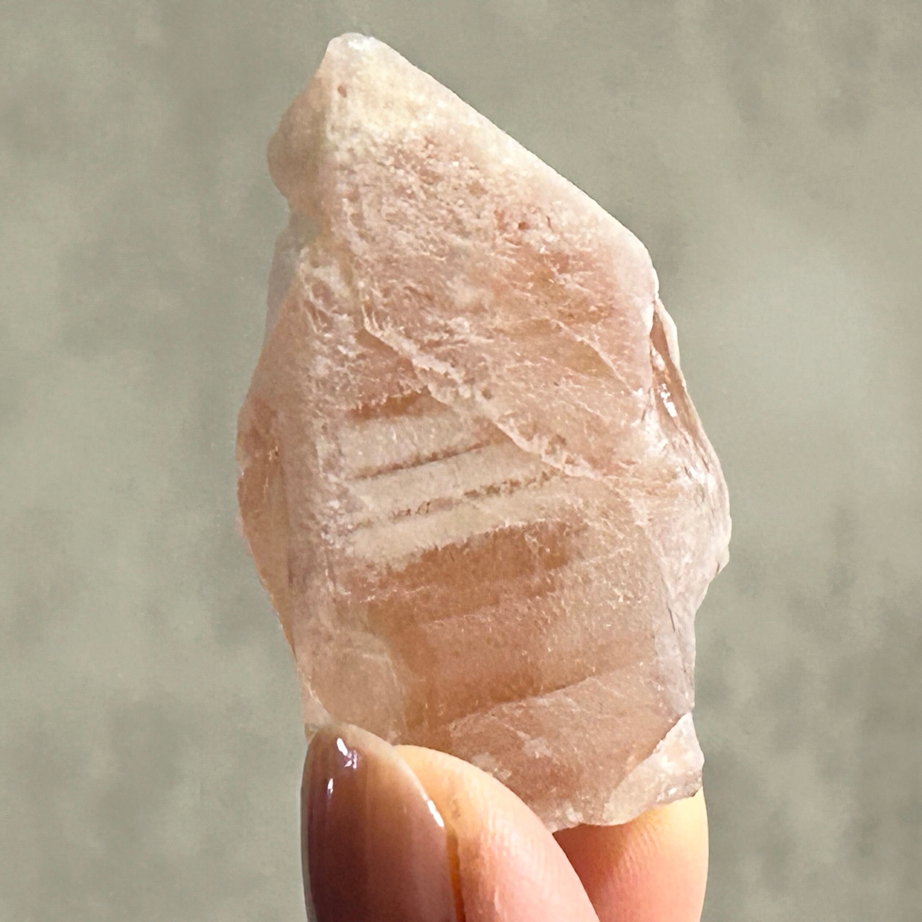 内部は、鉄分(ヘマタイト)によってピンク色に色づいており、表面が白やほんのり黄色い水晶に覆われ砂糖菓子のような雰囲気が愛らしい二層のクリスタルです。