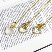 天然のローズ精油入りボトルのペンダントです。カットが美しい天然石のミニチャーム付き。それぞれ、ペンダントトップとしても楽しめます。