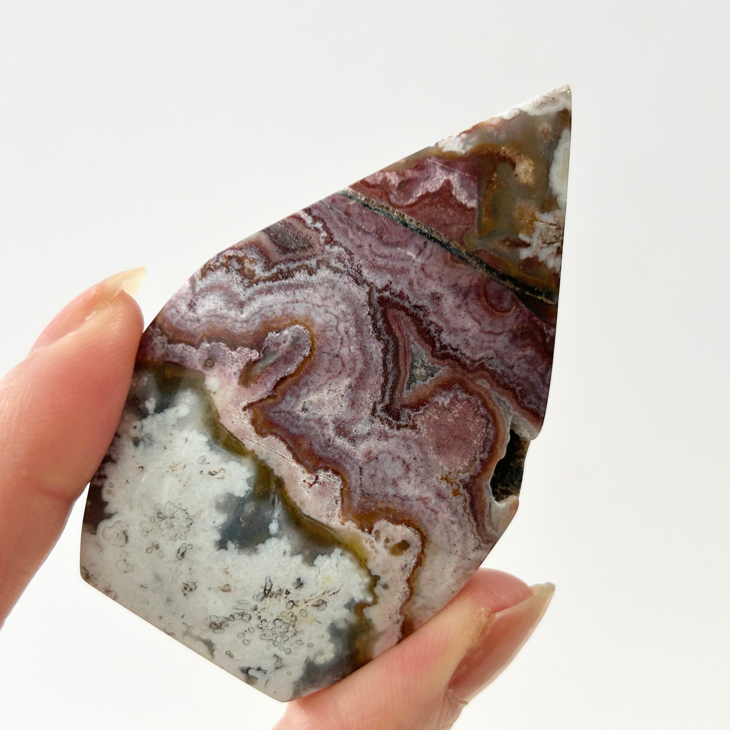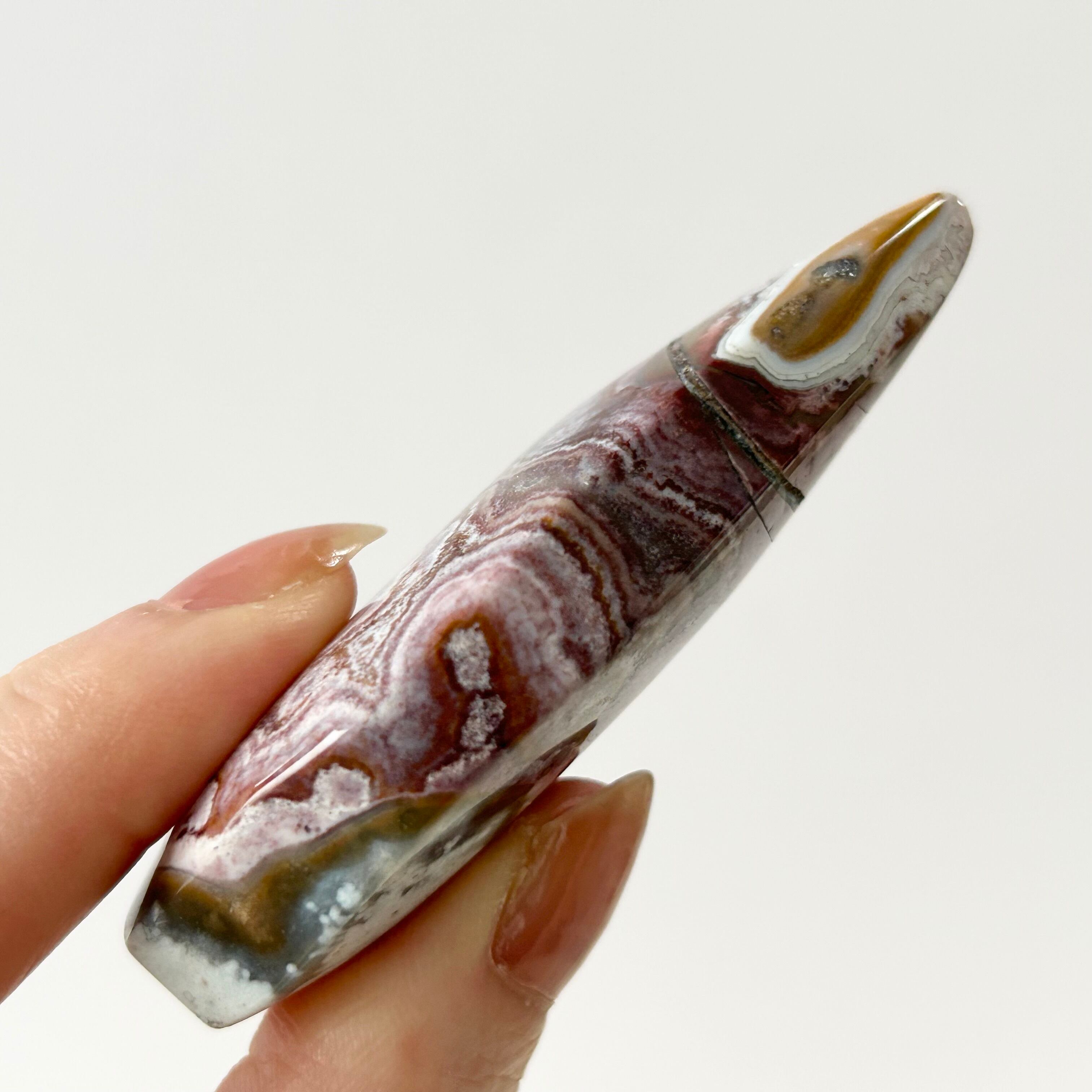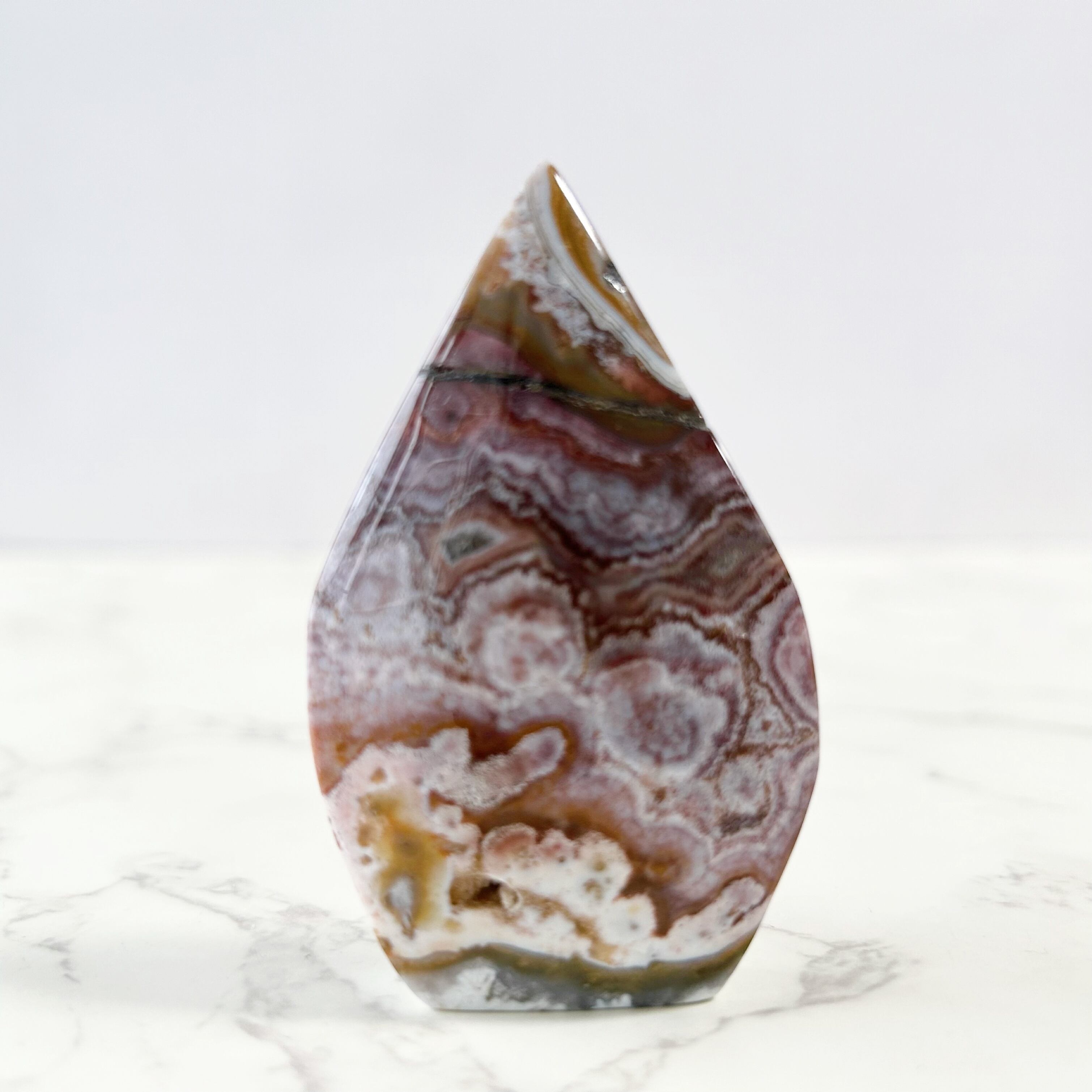 メキシカンクレイジーレースアゲートのフレイムシェイプ。幾重にも重なる縞模様が素敵てす。