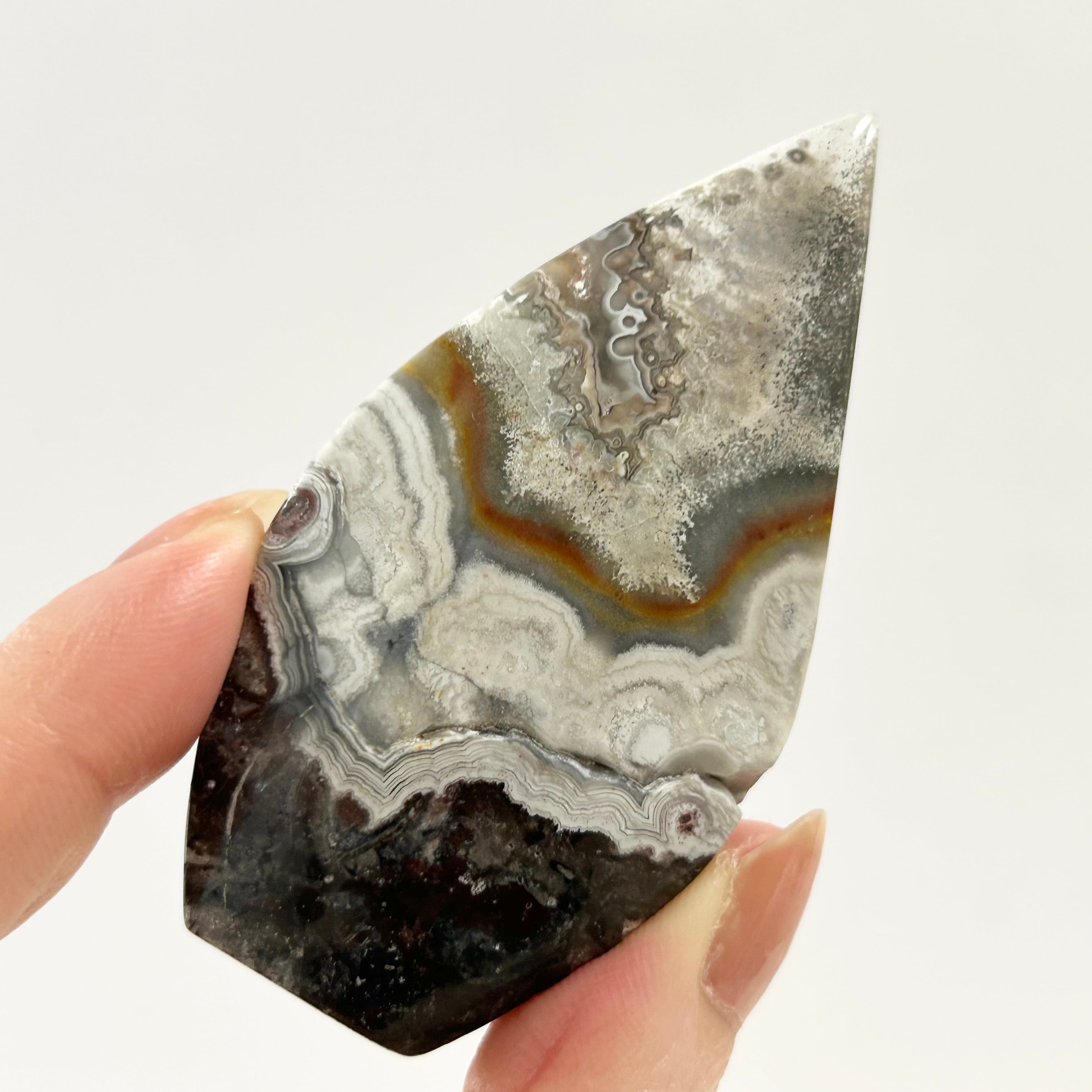 メキシカンクレイジーレースアゲートのフレイムシェイプ。幾重にも重なる縞模様が素敵です。