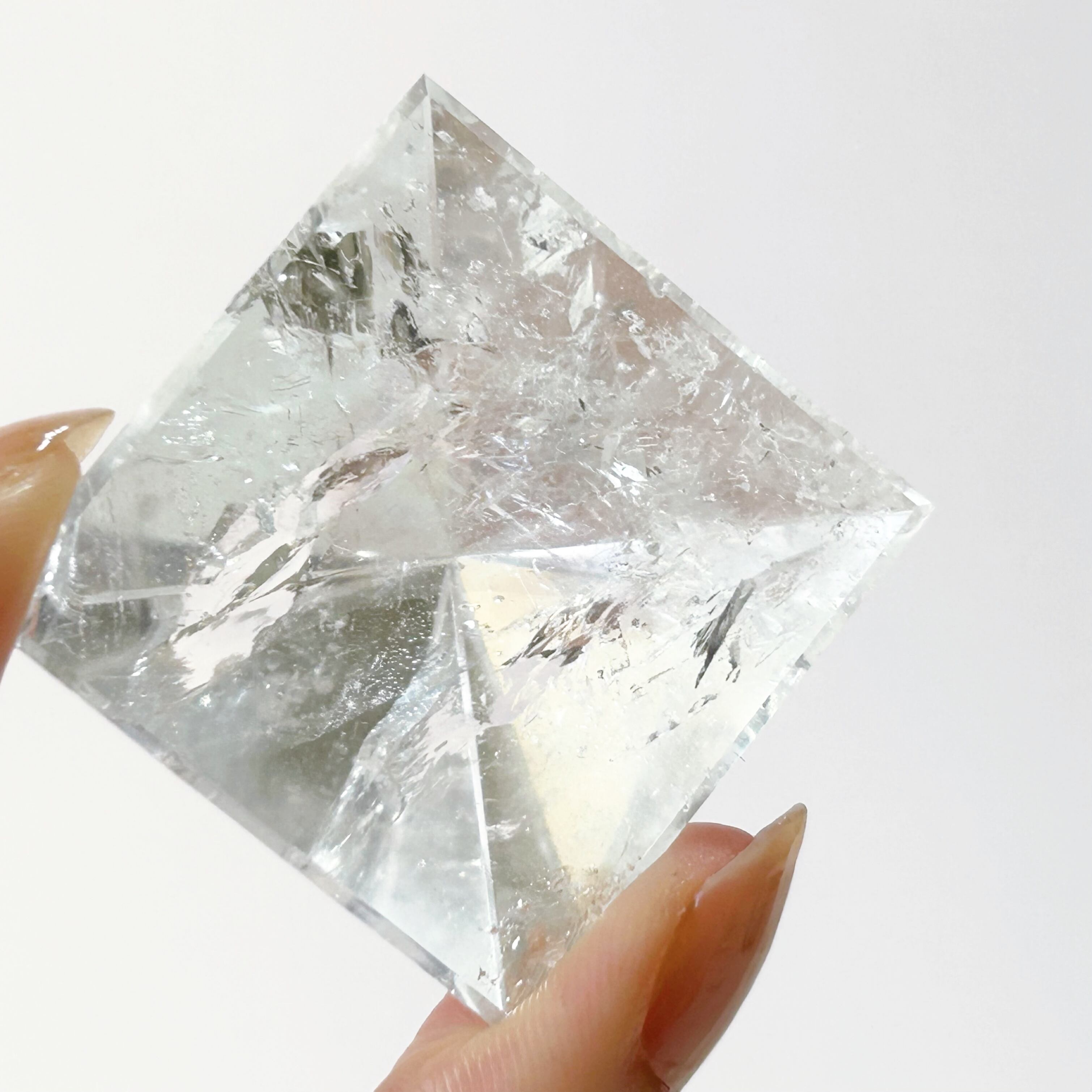 ブラジルのバイーア州セントセ産のレムリアンシードをピラミッド型にポリッシュしました。内部のレインボーがキレイです。