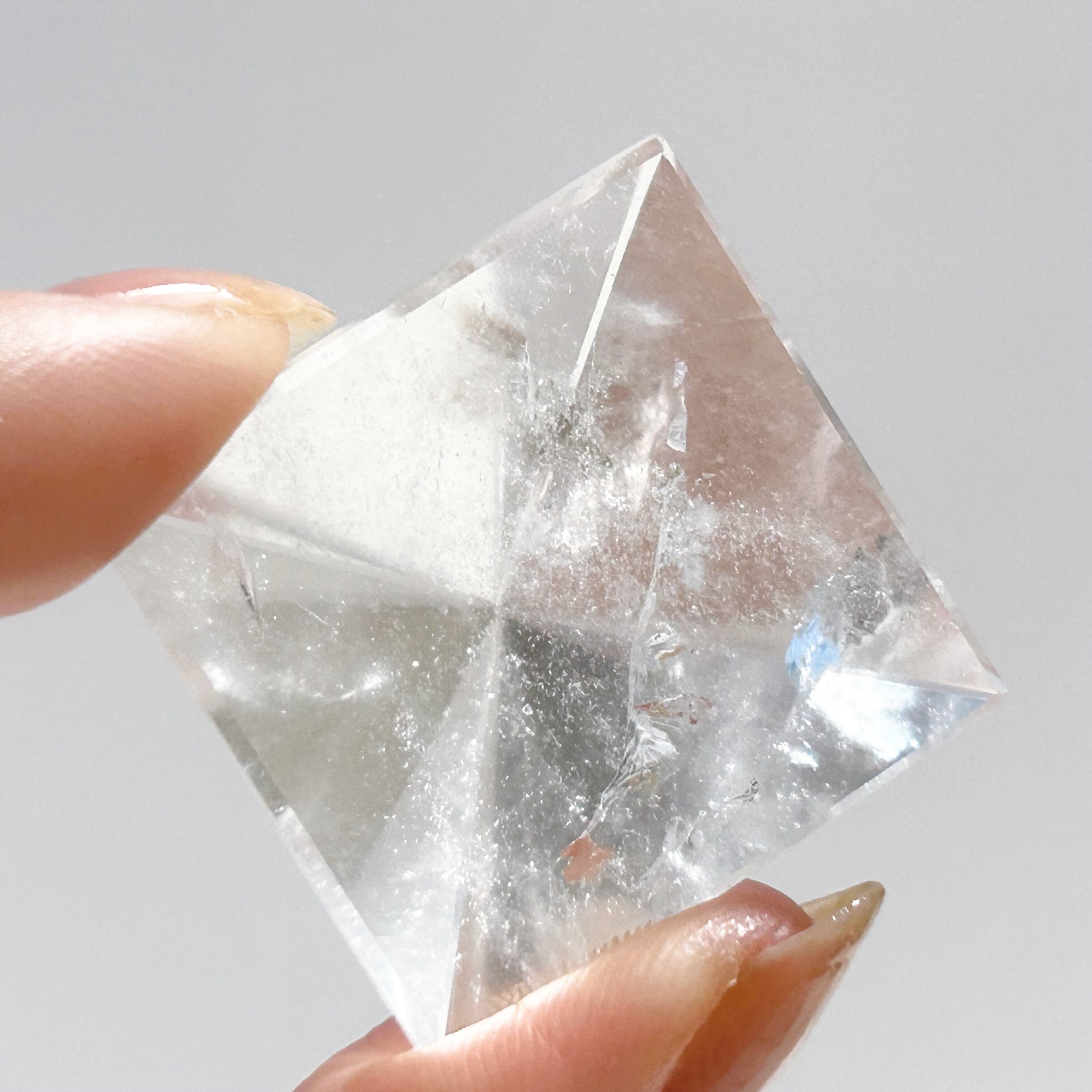 ブラジルのバイーア州セントセ産のレムリアンシードをピラミッド型にポリッシュしました。内部のレインボーがキレイです。