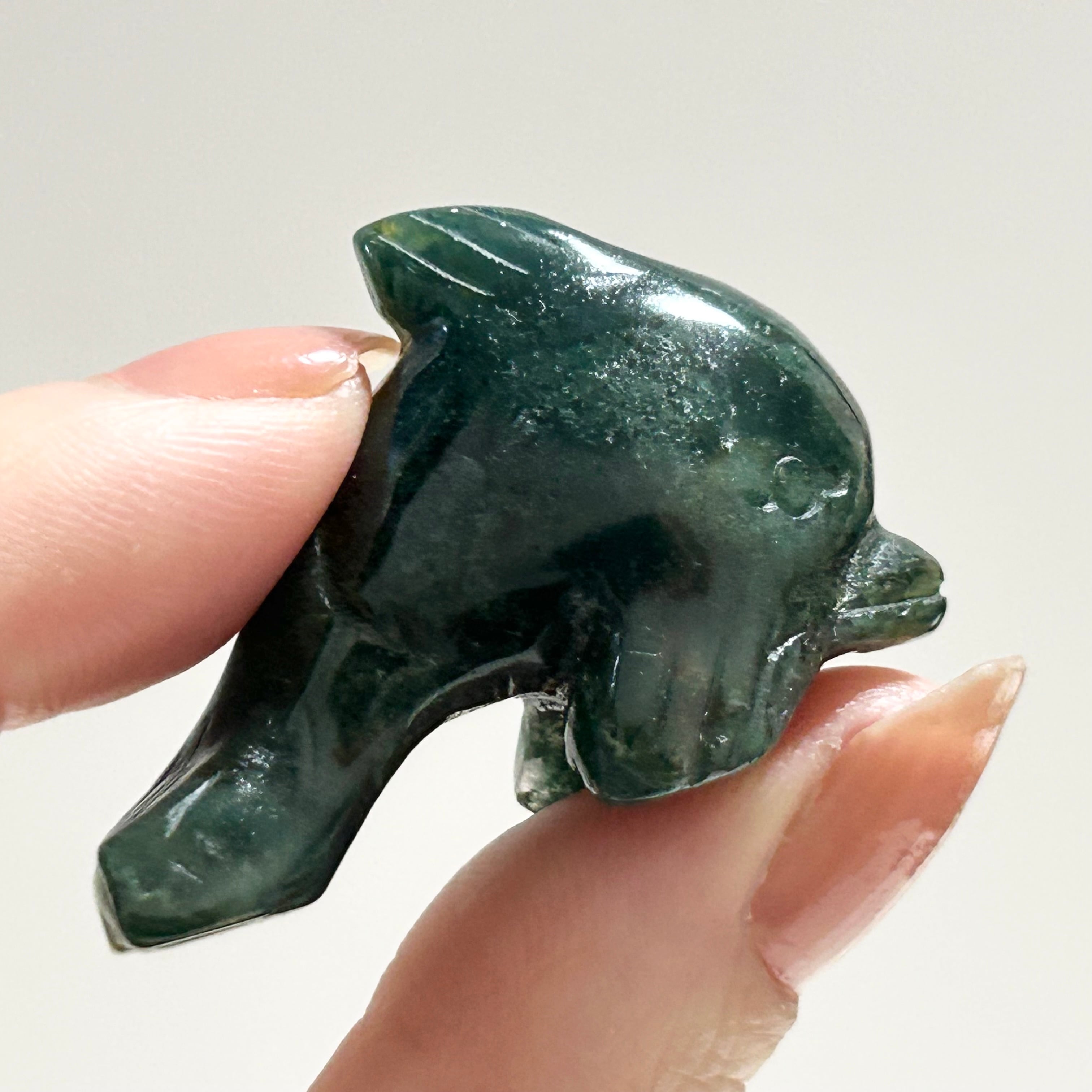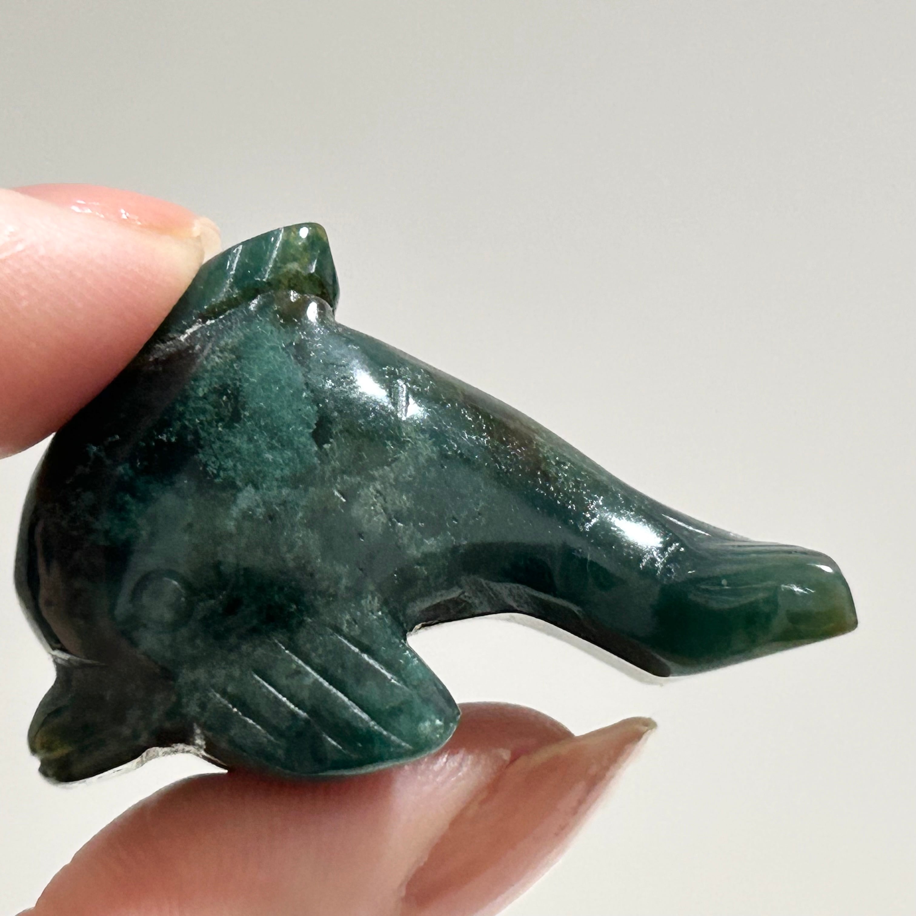真ん丸の目が可愛い、モスアゲートのイルカちゃんです。