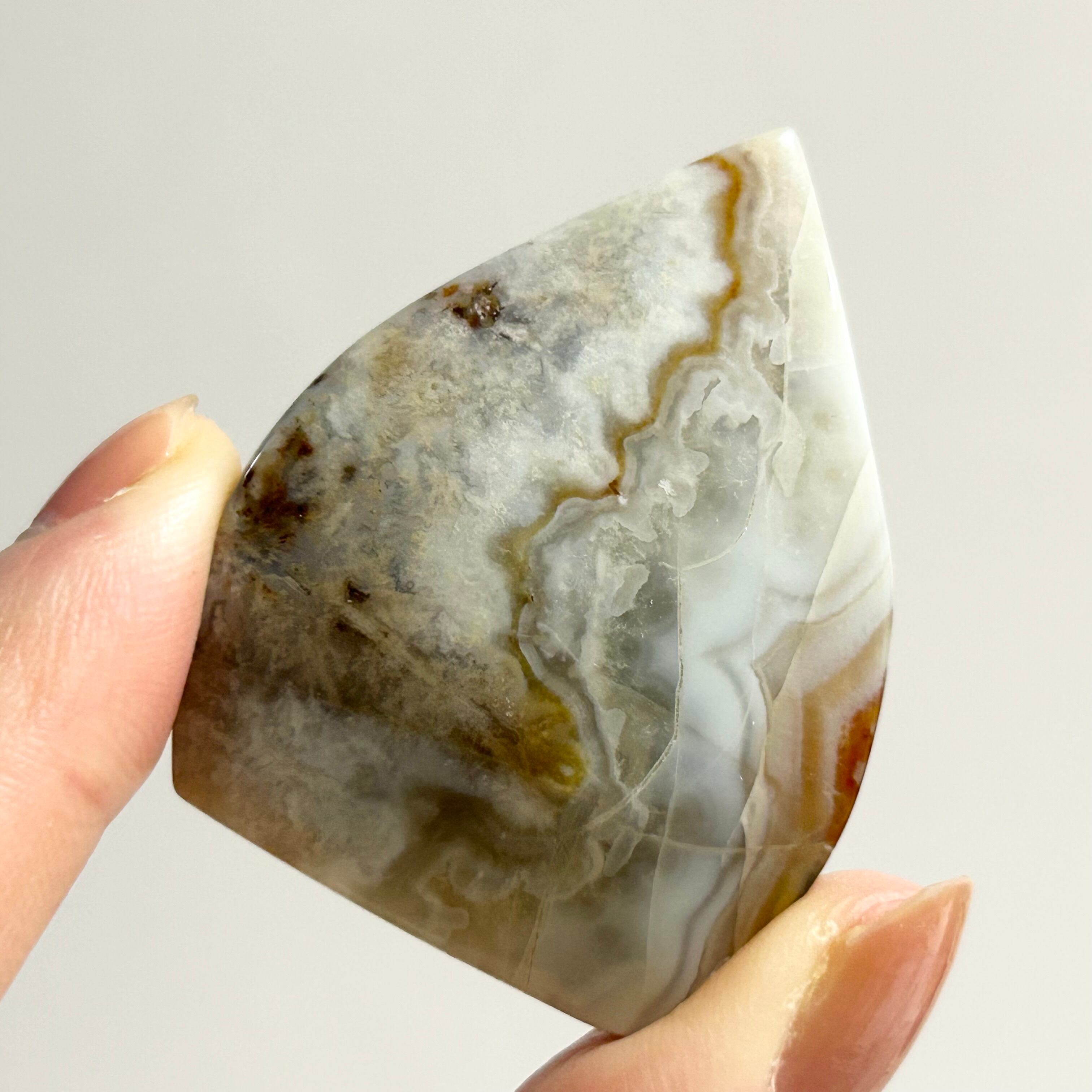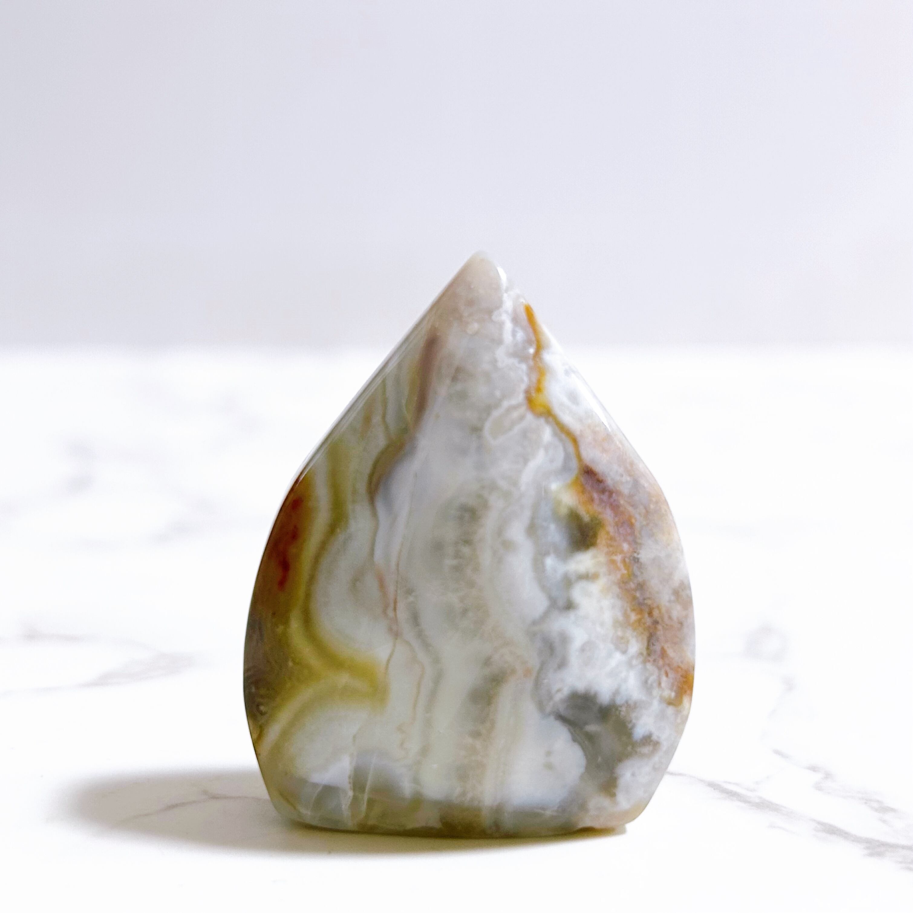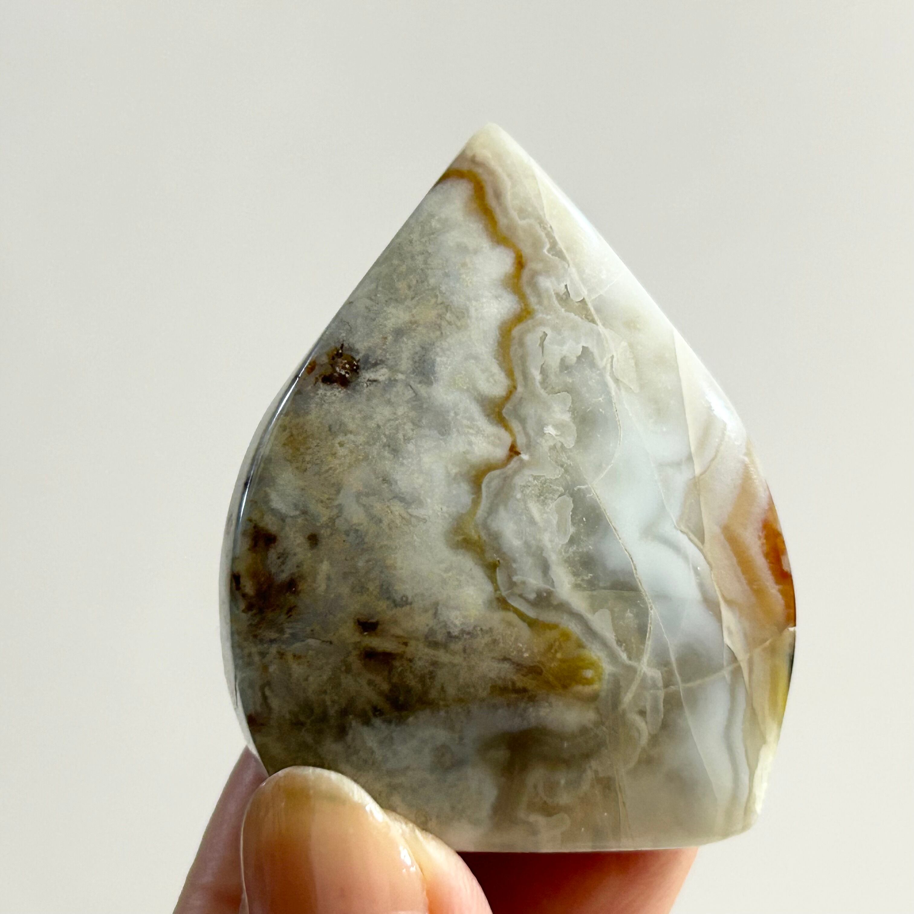 メキシカンクレイジーレースアゲートのフレイムシェイプ。幾重にも重なる縞模様が素敵てす。