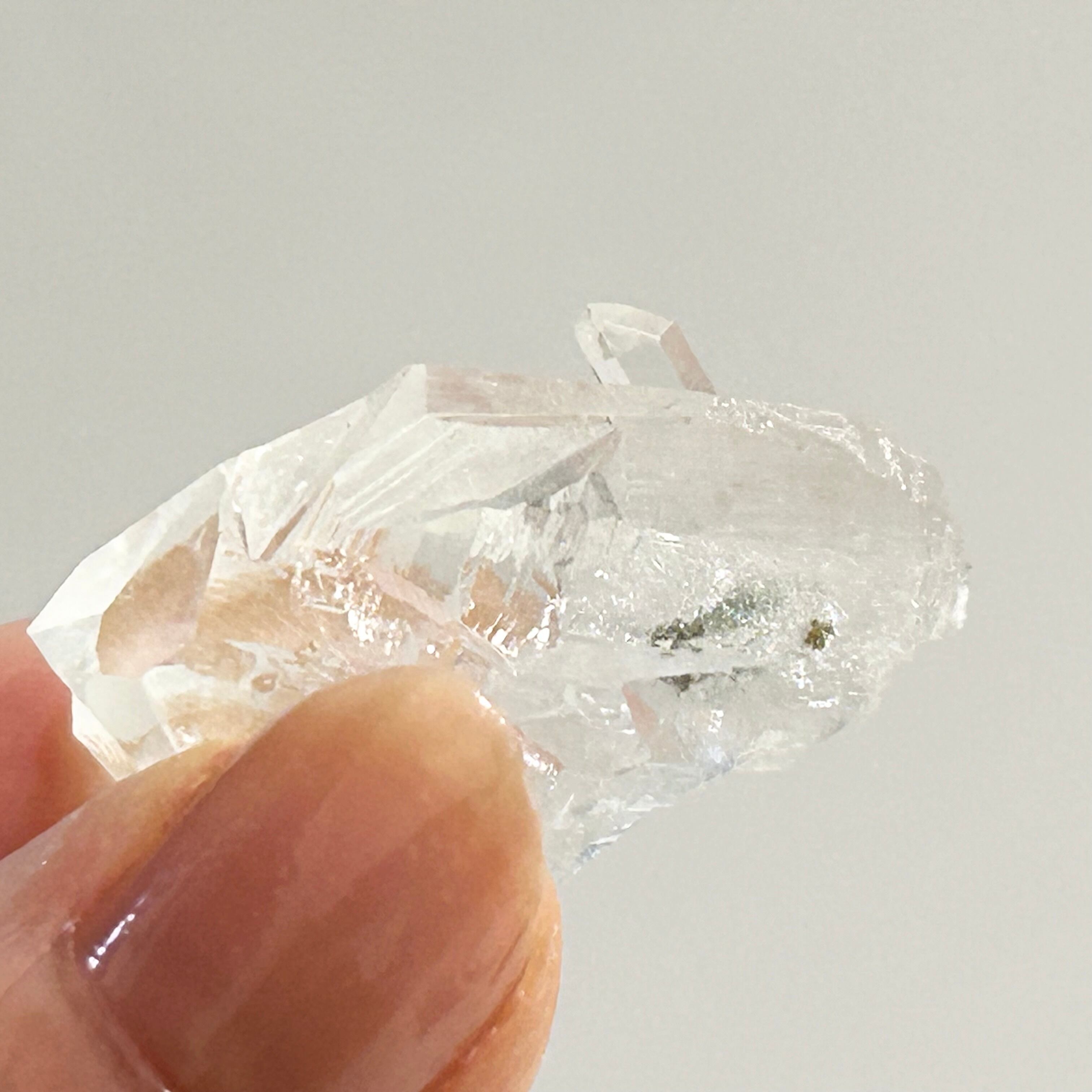 ヴィジョンクォーツは、氷のような透明感、煌めき、柱面に刻まれる無数の模様や条線が特徴のとても神秘的な水晶です。トマスゴンサガ産水晶、コロンビア産レムリアンシードに匹敵するほどの美しさです。