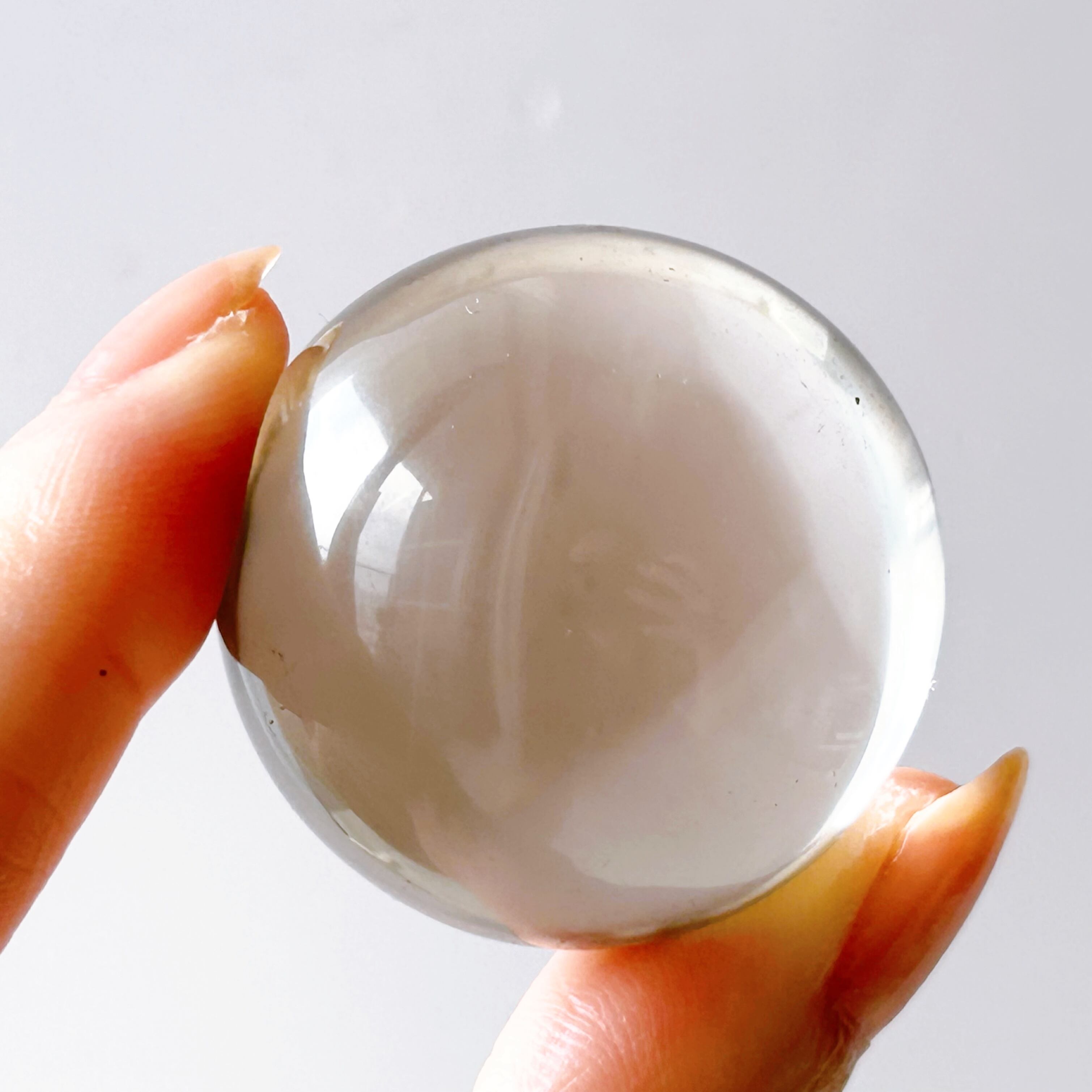 ブラジル・バイーア州セントセ産スモーキーレムリアンシードのスフィア。内部にクラックが全くない、無垢水晶です。淡いブラウンと透明感が美しい逸品です。クリアガラスのスフィアスタンドをお付けします。