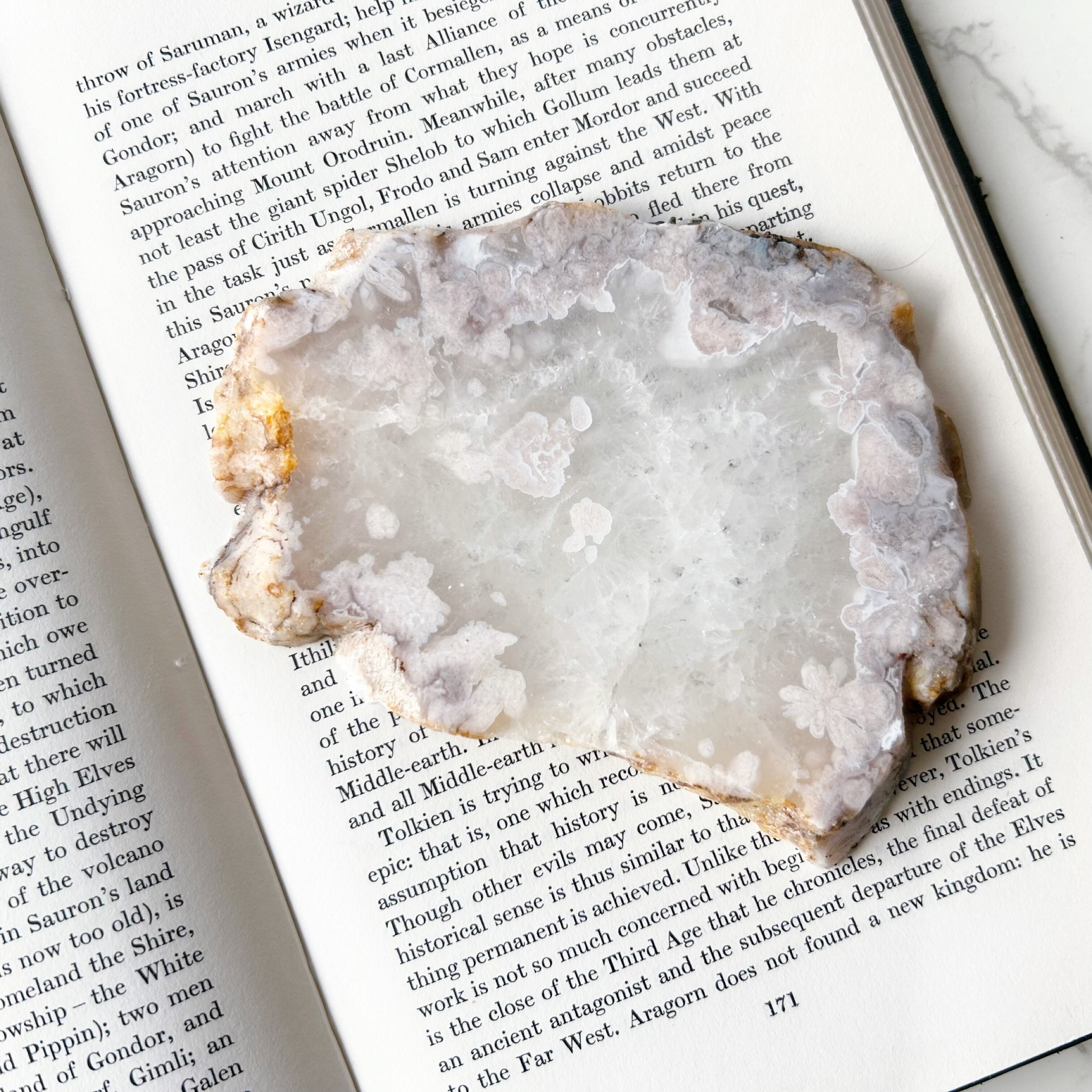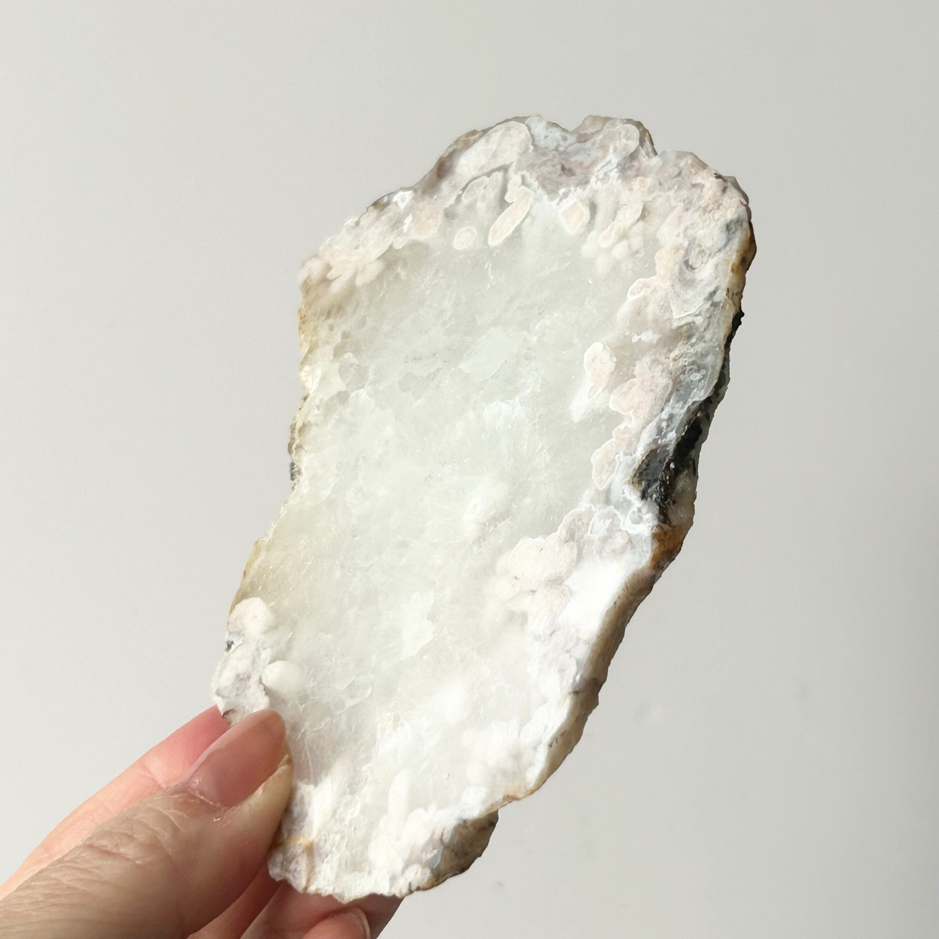 サイドは原石感を残し、両面ポリッシュのタイプです。淡いピンクのお花のような模様が可愛いです。