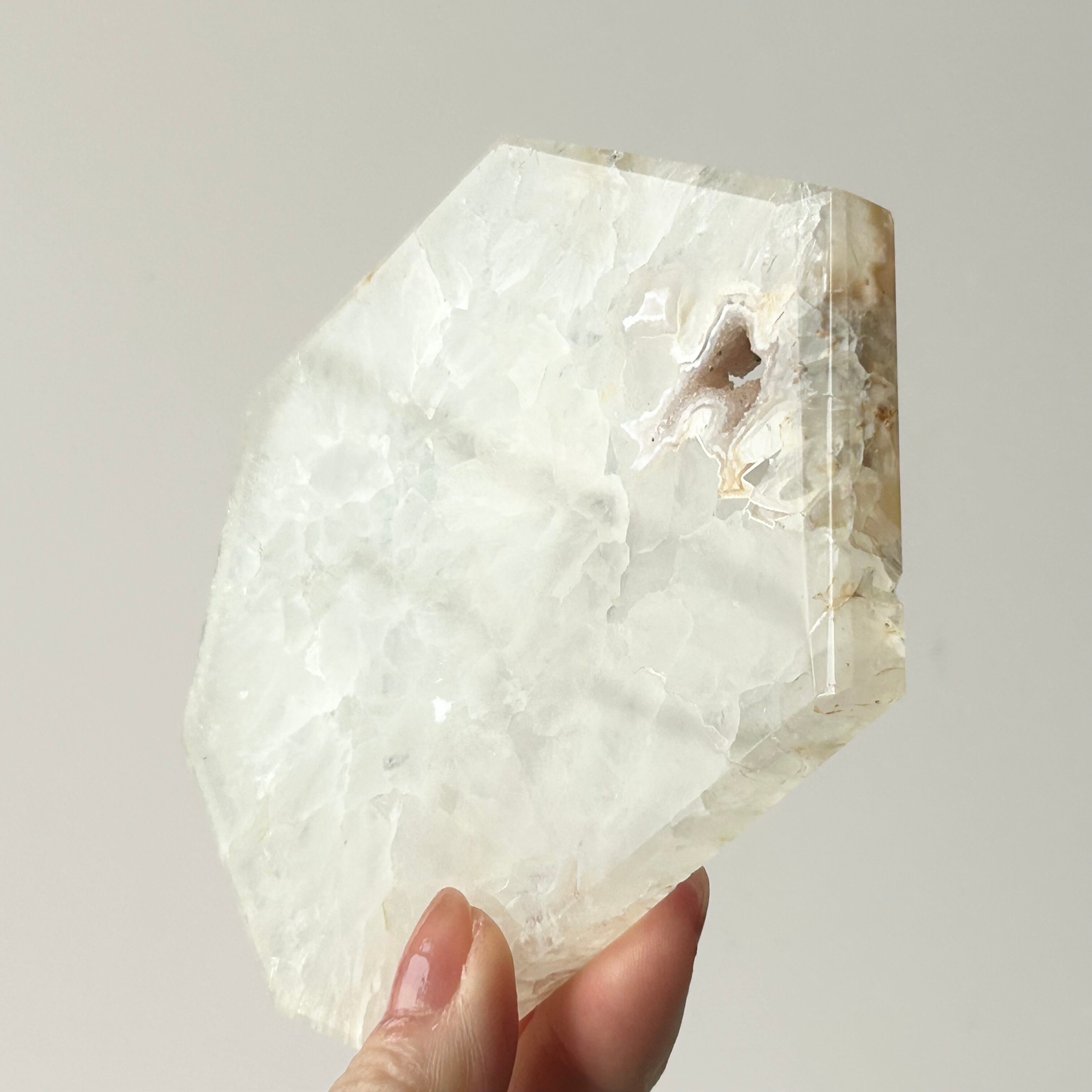 透明感が美しい、ホワイトアゲートのプレートです。両面ポリッシュのカットタイプです。
