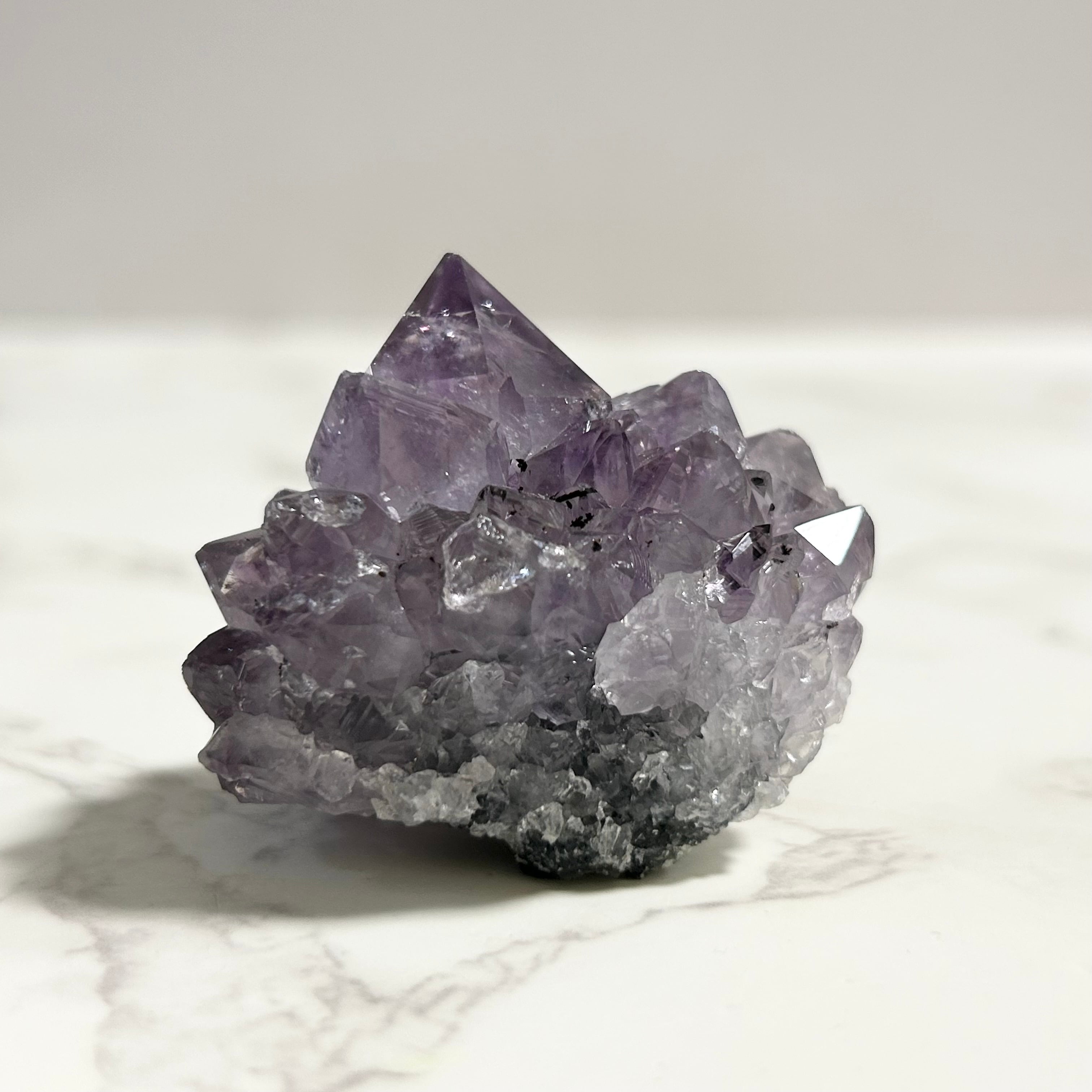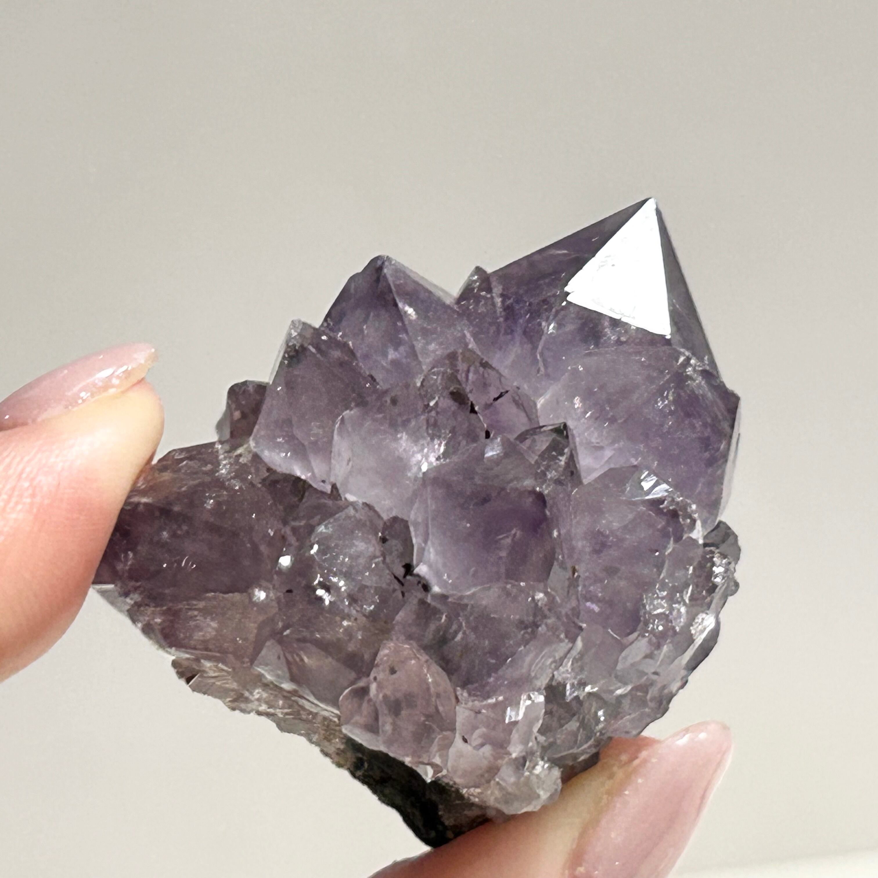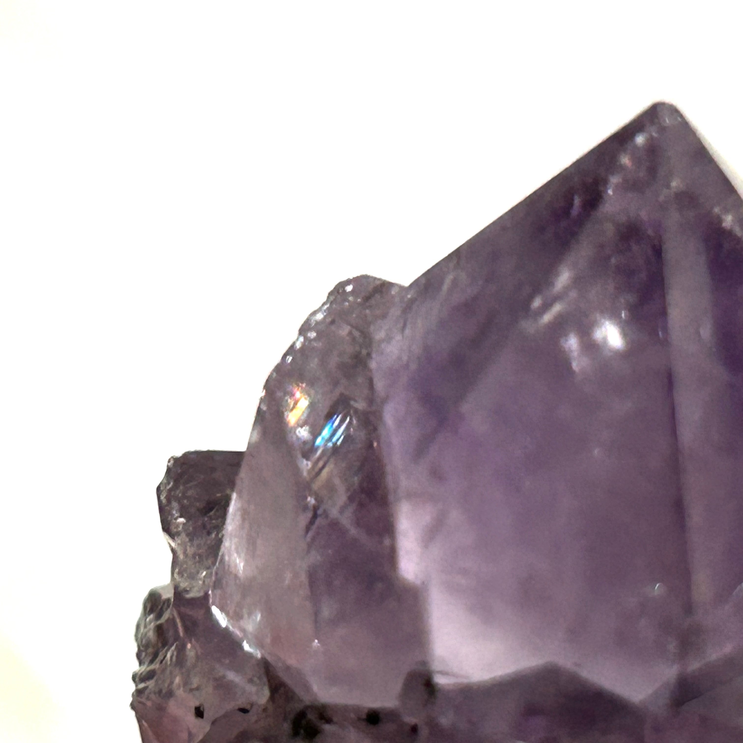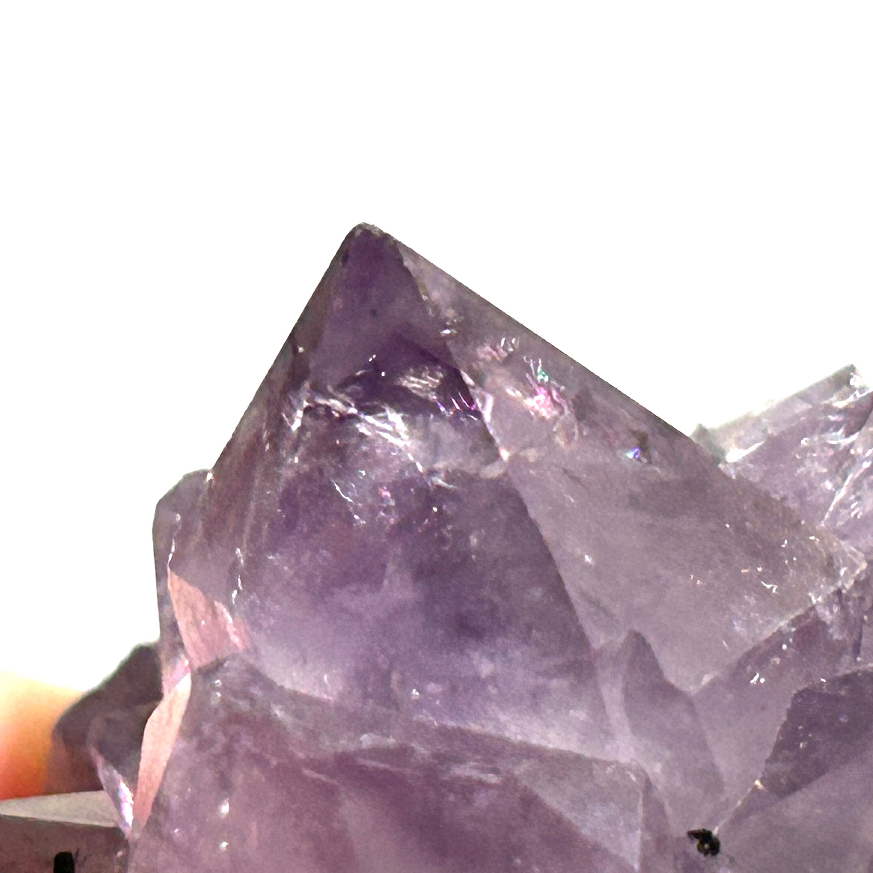 あちこちにレインボーが見られる、ポイントの形がかっこいいアメジストです。