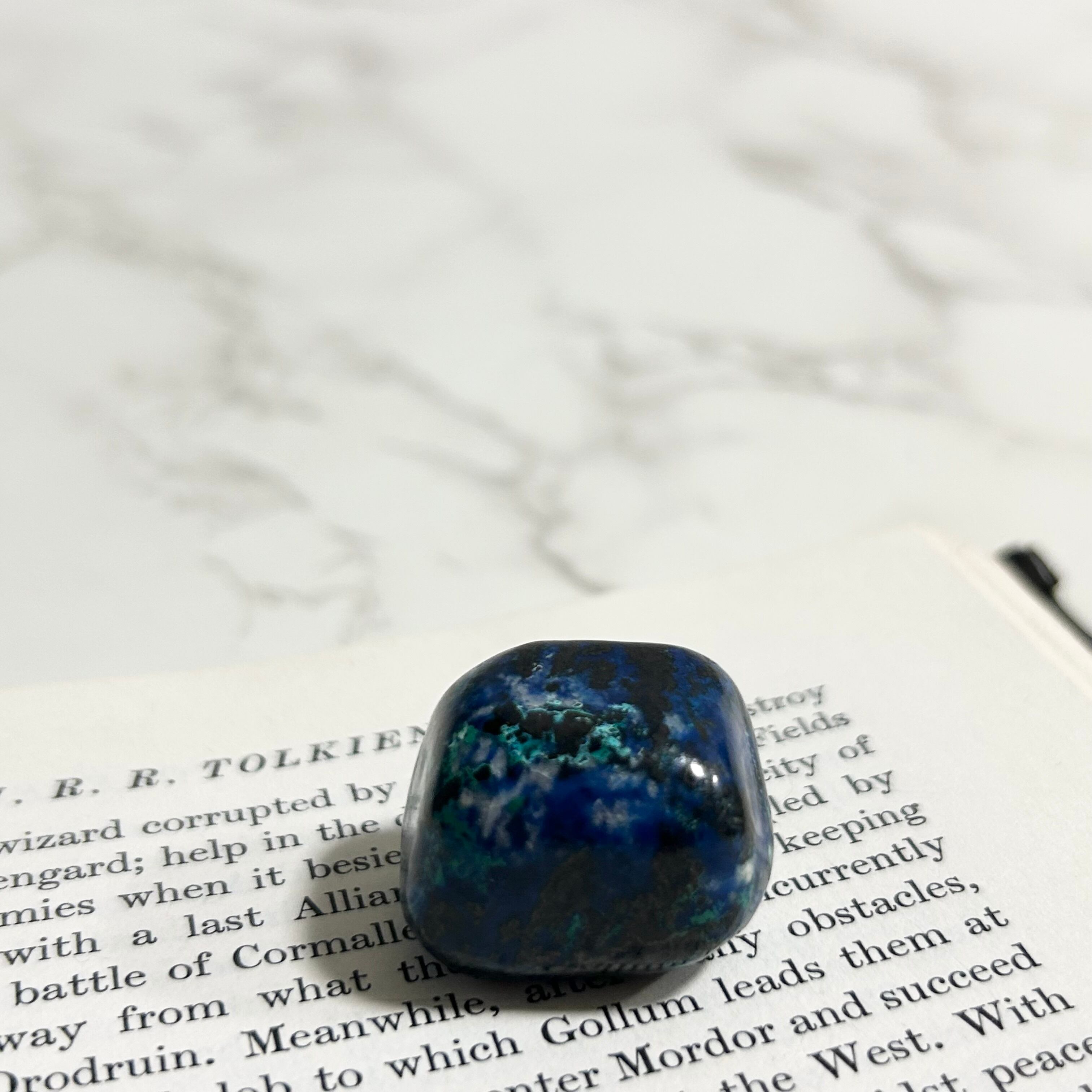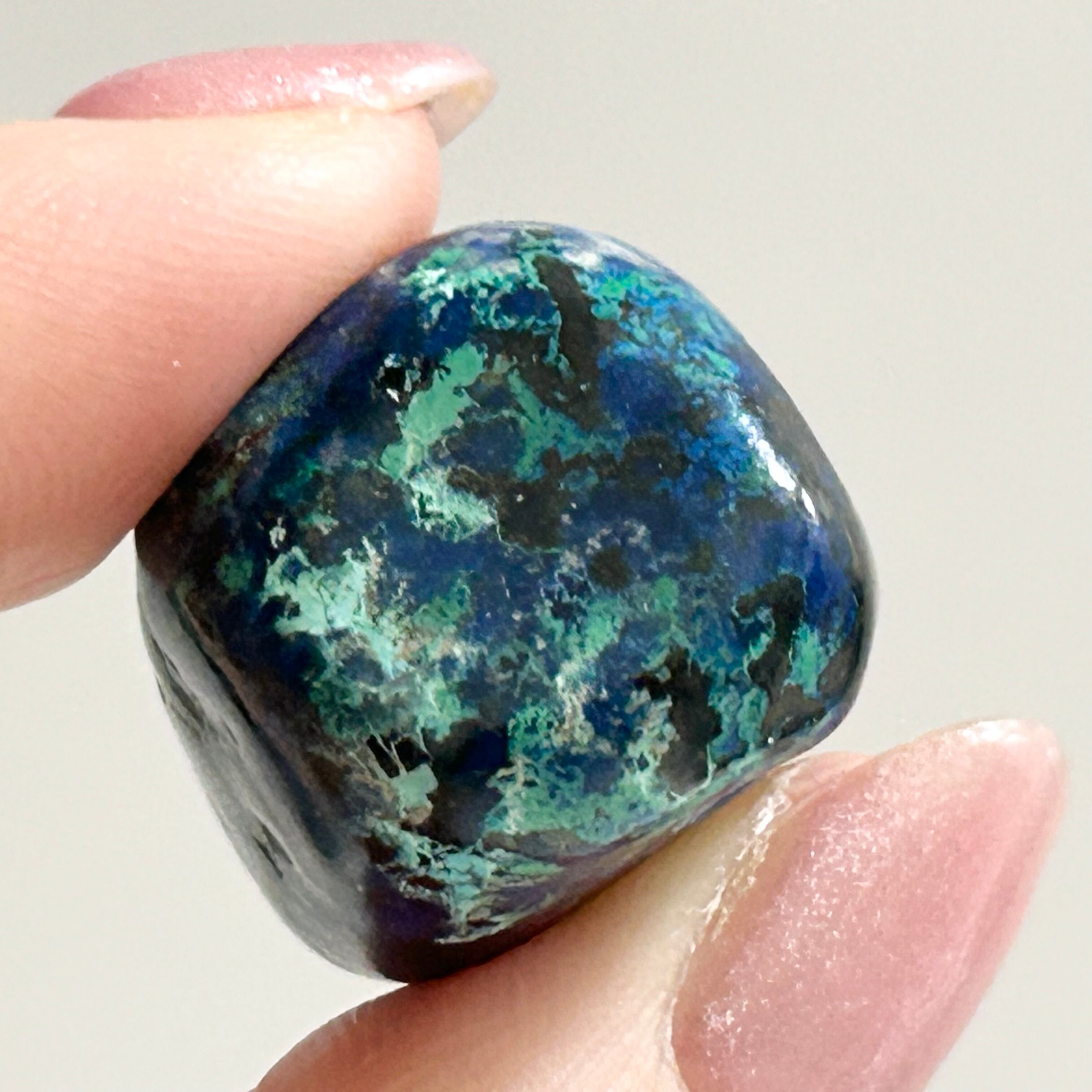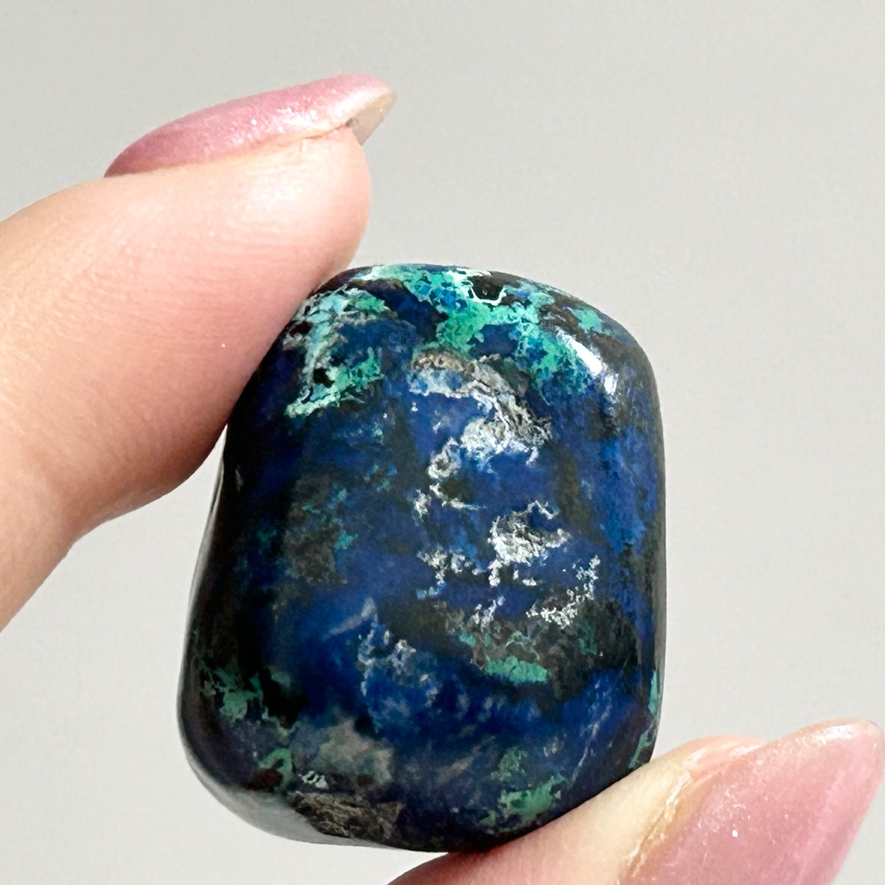 深いブルーが美しい、コンゴ産シャッタカイトのタンブルです。動画の6番目にご紹介しているものになります。