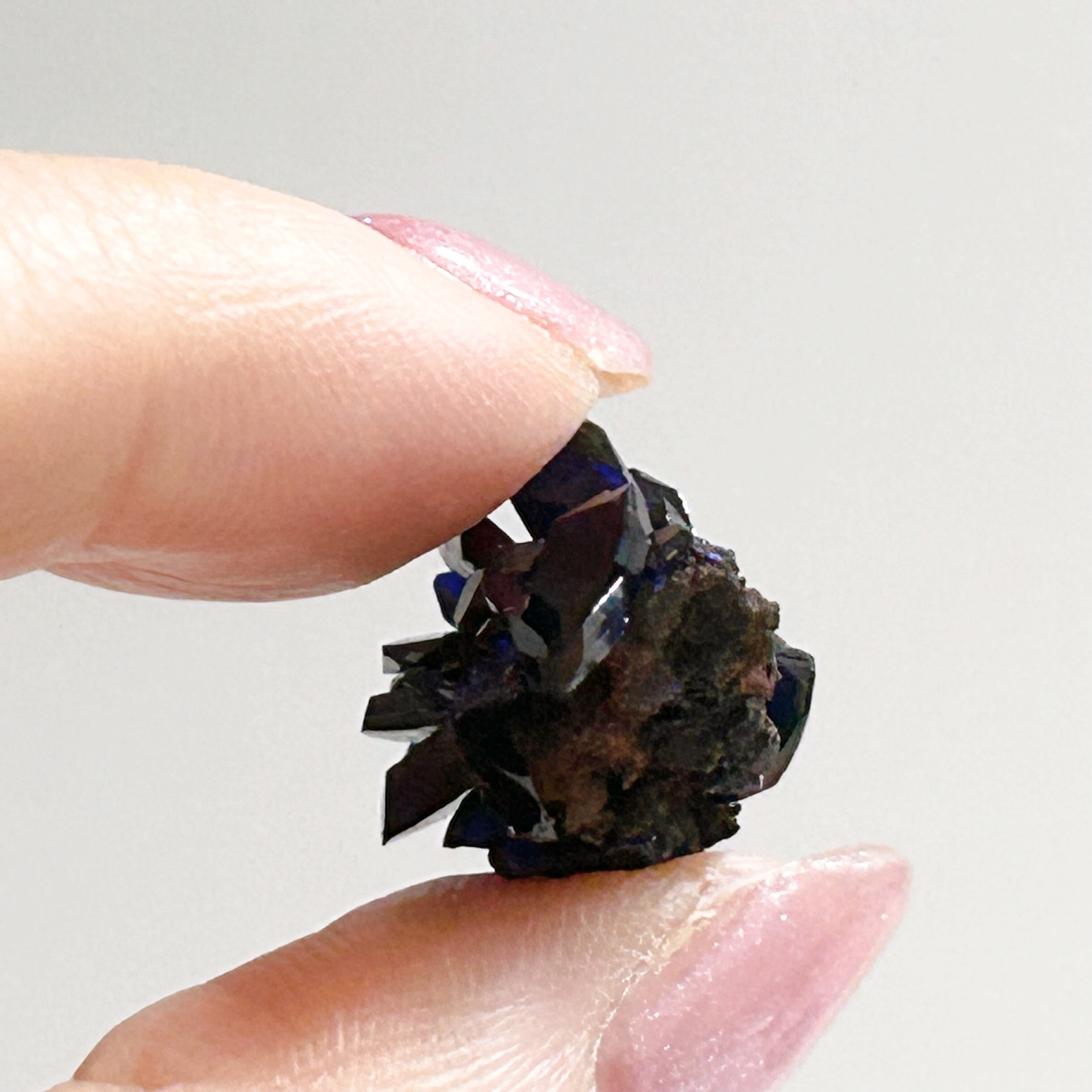 深いブルーとテリ艶が美しく、大変珍しいモロッコ産アズライトの原石です。
